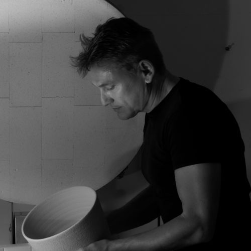 The Peak District Pennine landscape and seasons are the backdrop to everything Timothy does. He makes pottery on the border between function and sculpture: in essence vases, bowls, bottles and cups, though these are really just what he calls 'serving suggestions'. His work is multiple-fired, often starting with the wood kiln and ending with lustres.