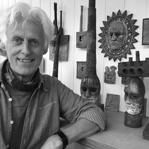 Alasdair Neil’s work, inspired by decaying industrial architecture and desolate landscapes, features patterns, textures, and forms derived from his vast collection of found objects. His recent pieces showcase the tones of residual paint often found on source objects, while others feature a dry stoneware glaze over metal oxides.