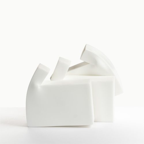 Her next formative period was a residency in 1976 at Gladstone Pottery Museum, an inspirational historic location working alongside skilled craftspeople. It was here that she discovered bone china which when its surface was carved into, resulted in ‘lines of light’. This became her entire focus for the next decade. She produced paper thin pierced and carved vessel forms (in national and international collections). Angela continues to create work in china and porcelain of all shades of white and in varying scale.