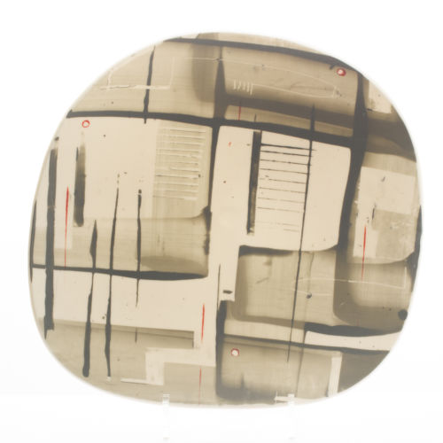Anne Butler trained in Ceramics in the University of Ulster and the University of Wales in Cardiff and now works from her studio in Northern Ireland. The Eclipse vessels are inspired by the light and shadows cast in the urban environment. Abstract marks of coloured porcelain are transferred onto thin sheets of porcelain, which are then cut, layered, assembled. The translucent quality of porcelain evidences this making process and allows the shadows of layers to be seen. Many years in Asia has also influenced the work. The Japanese aesthetics and sentiments regarding natural transience, distortion and fallibility of material and process are evident in the work.