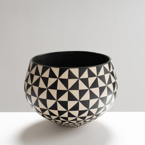 Ant has been making pots for over 50 years, the first 25 spent producing terracotta garden pots and then, side by side with his wife Di making maiolica ware. Together in late 2019, they decided on a fundamental shift away from wheel thrown, functional domestic orientated ware. In the early months of 2020, just before lockdown, they began to produce large hand-coiled vessels, decorated with black geometric designs and without the use of glaze.