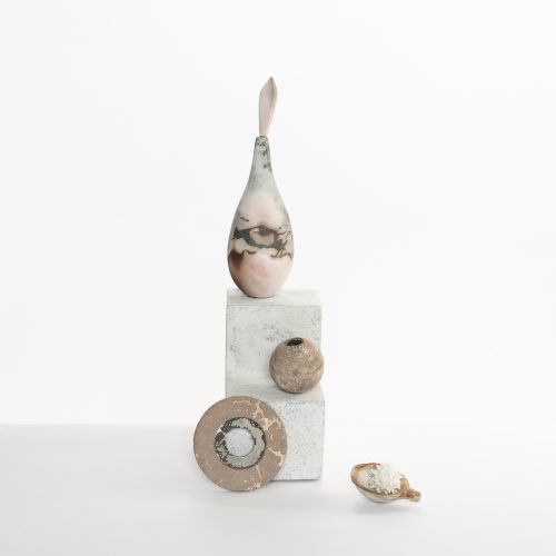 Collecting and arranging manmade and natural forms provides Claire with great enjoyment and creative impulse for her making. Crucial to her creative process is her discipline of drawing and keeping a continuous sketchbook of ideas and studies. Sculptural forms have emerged through extensive research and exploration of alternative hand-building techniques. Smoky and painterly surfaces envelop her ceramic forms and are integral to the whole.
