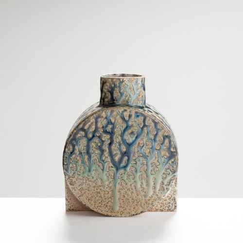 Daniel is a maker of one-off thrown, salt and ash glazed stoneware. His work is mostly wheel thrown forms – simple and functional, sometimes slab built or thrown and assembled, his shapes developed to combine with his glazing techniques. He explores unconventional firing processes, experimenting and developing his purpose-built kilns pushing the boundaries of traditional industrial salt glaze to enrich his pots, which are both contemporary and individual. Vibrant slips and ash glazes are applied in multiple layers to encourage the firing process to leave its mark on the ware. During the firing process textures and movement happen within the fluid glaze, producing unique and complex flowing, textured and feathered glazes to be explored beyond their surface. Every firing has an element of unpredictability as the boundaries of the materials are pushed to their limits.