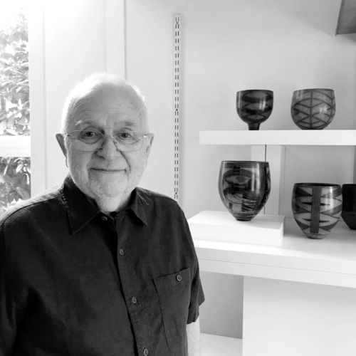Trained in the Leach tradition he moved towards more European techniques in the 1980s after rediscovering his student dissertation on Greek vase painting and was a pioneer in reviving the modern use of carbonised terrasigillata. He began working with this technique to develop a rich surface with a combination of form and pattern that would be integral to the clay, experimenting to obtain a feeling of depth, and then developing the carbon process to play its essential and unpredictable part. He is searching for the evolution that comes from themes and variations; allowing the ideas to flow from one group of work to the next, adding and omitting to arrive at a natural relationship of surface to form.