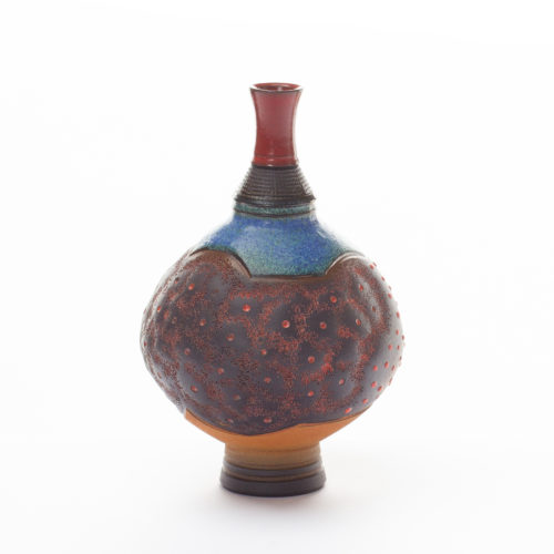Sometimes described as a maker of ‘unidentified objects from a faraway galaxy’ this painter-turned-potter brings his background in creating classic illustrative images and abstract expressions of emotion through colour and texture to his pieces.