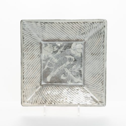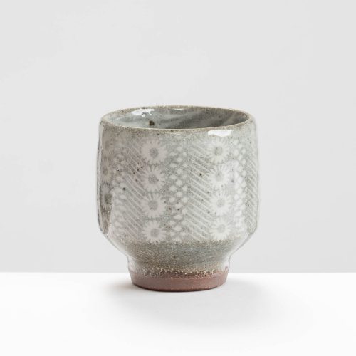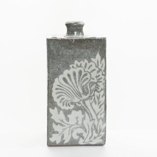 Currently focusing her making predominantly on tableware, Hajeong fuses traditional Korean techniques, using inlaid white slip and a dark clay, with patterns influenced by William Morris. To form one particular piece, she uses a flat master mould in which she has carved the surface of a plaster slab 3ft x 2ft before making plate moulds by selecting certain areas of the carved surface to carry the imprint of the carving. Inlaying white slip to fill the hollows and then, when dry, scraping back the white slip to reveal the crisp and clear pattern underneath. A time-consuming process but the results that are displayed in each piece reflect the culture, history and craftsmanship behind it.