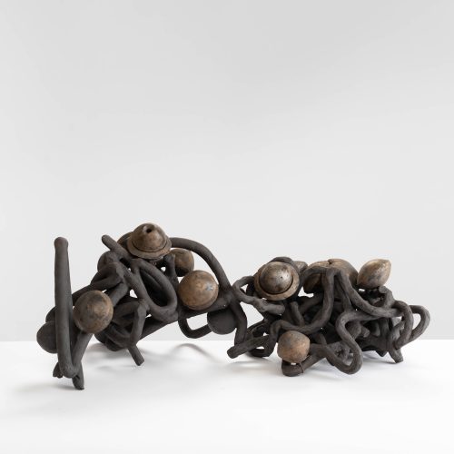 Working with clay has always been central, using its opportunities for sculptural, plastic expression and he has introduced found objects of other materials allowing each material its voice.