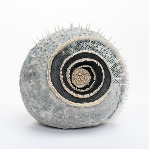 ‘As a ceramic artist, I am highly conscious of my spatial environment in relation to my material, and often immerse myself in its meditative qualities. This in turn is conveyed in the work and creates a highly visual and tactile surface informed by my love for nature and fine detail. I intend to provoke multiple sensory modalities, and thus spark a curiosity in the viewer. My work demonstrates how visual stimuli can be achieved by grouping single elements to form a larger gestalt whole, as reflected throughout nature.’