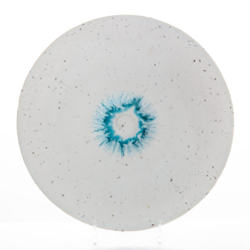 He works with a blend of English porcelain. His current production is almost exclusively one-off bowls and vases. Most work is thrown on a potter’s wheel, raw-glazed when bone dry and once fired to 1280°C. The lure of new glazes he finds irresistible and he is constantly experimenting with and developing new glaze recipes.