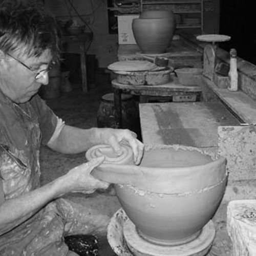 Rob was born in Doncaster in 1945. He first became interested in pottery and art whilst at school, going on to further education at Leeds College of Art. Robert then studied sculpture at Cardiff College graduating in 1968, before finishing his education with an Art Teacher Training Course at Hornsey College. Rob returned to the pottery he had enjoyed while at school and the decision to become a potter was a flash of inspiration which he has never regretted. Since making this decision in 1970, he has made countless pots, set up workshops and taught ceramics.