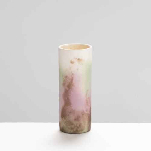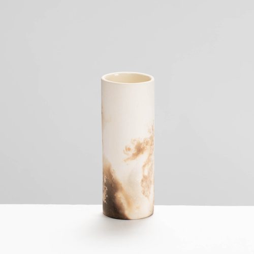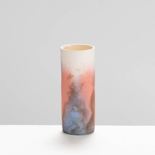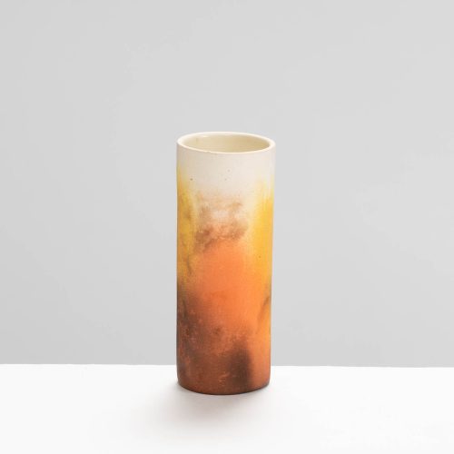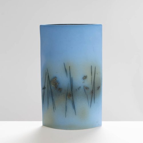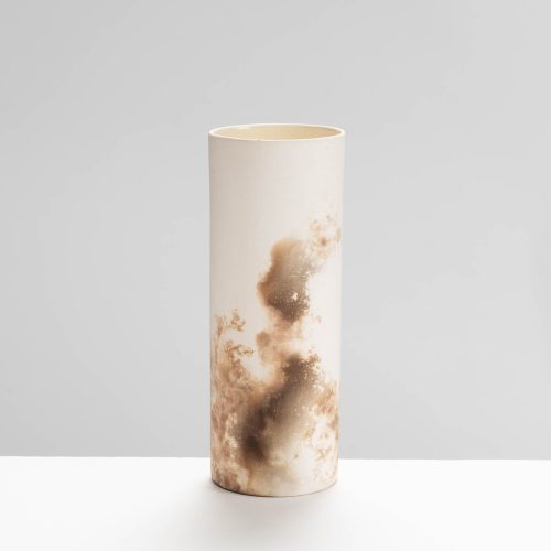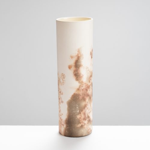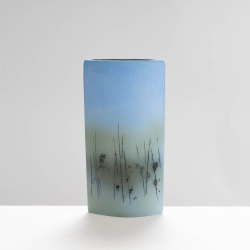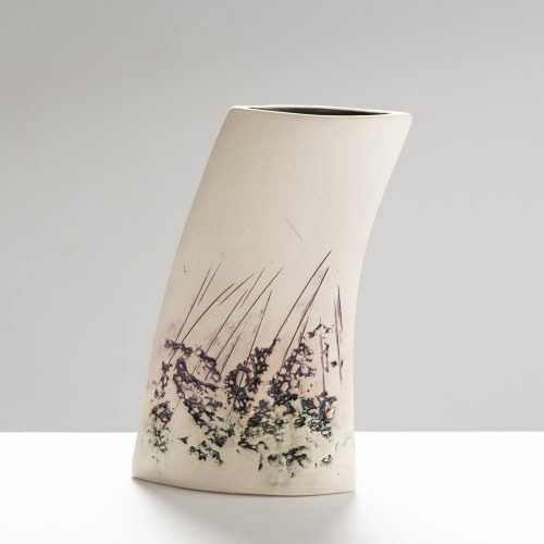 Inspiration for decoration is distilled from a process that begins with photographs taken whilst travelling – rock formations, beach debris, horizons, buildings and their surfaces, museum artefacts. Forms and contours are often elliptical and the addition of coloured slips and the smoke marks from a sawdust firing help to create a three-dimensional quality of depth. Other surfaces are an interplay of incised lines on vessels that have been textured, built up, impressed or distorted. A hint of colour comes from metal oxides mixed into clay and glazes.