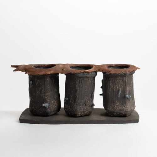 Angela has been working in ceramics for over 50 years. Her first experience of clay was at after school class, leading to a Foundation Arts Course in Derby, then a BA in Wolverhampton, and an MA at Royal College of Art London. The latter two degree courses were very open-ended and encouraged exploration of other materials and a wide variety of working methods. This suited Angela as she has always been interested in both industrial production processes and sculptural techniques.