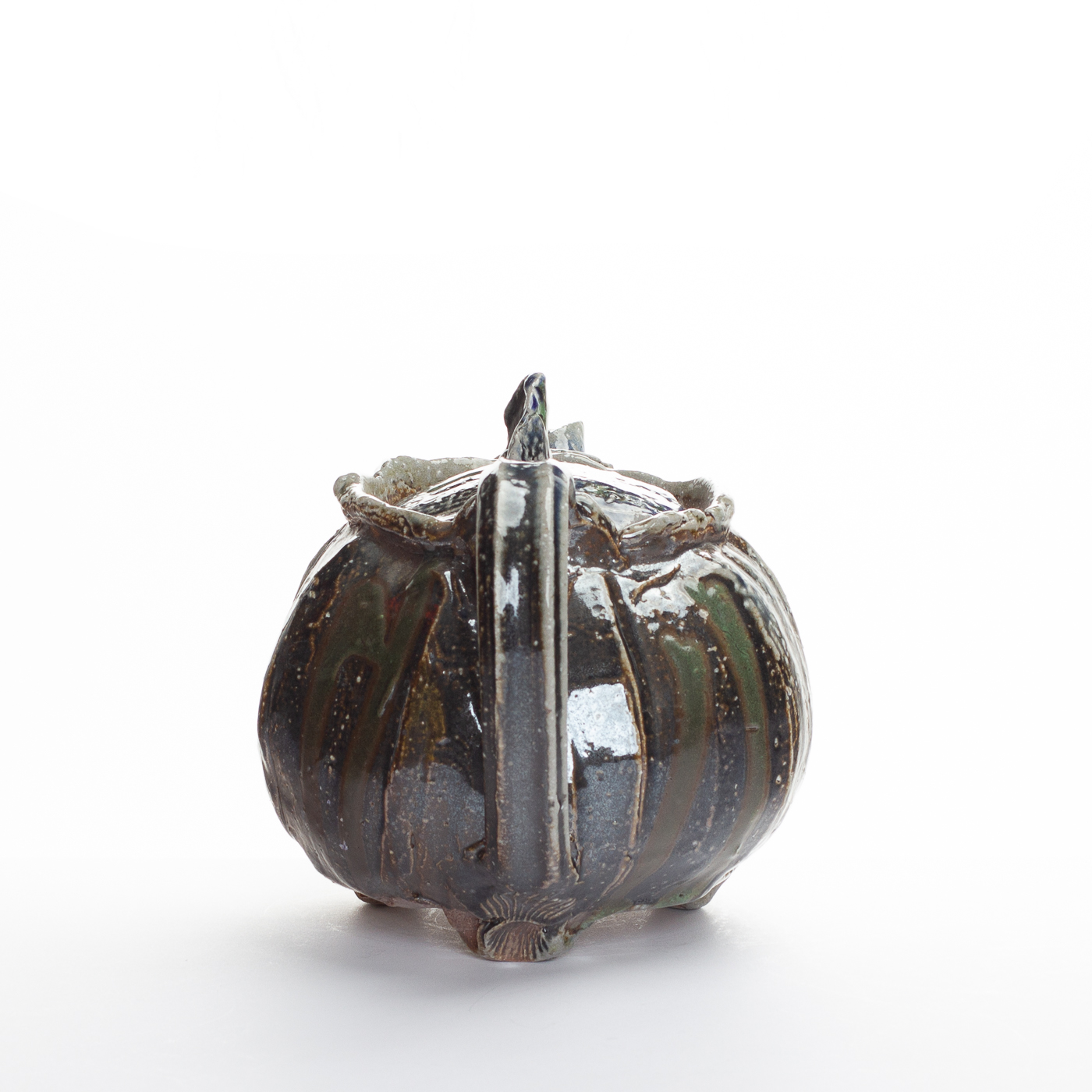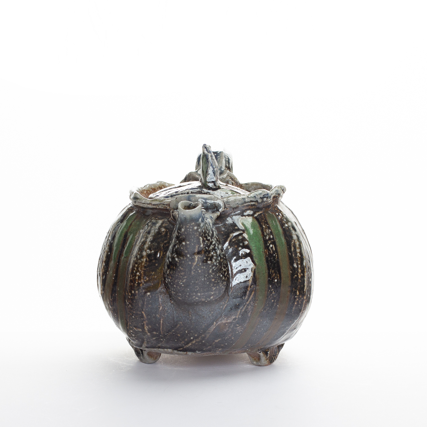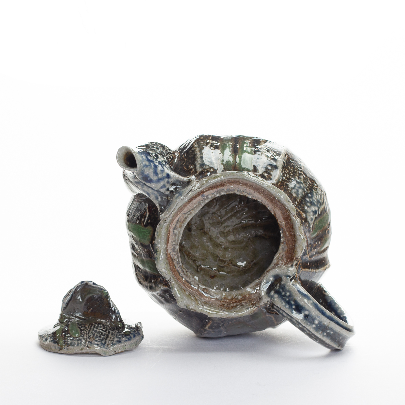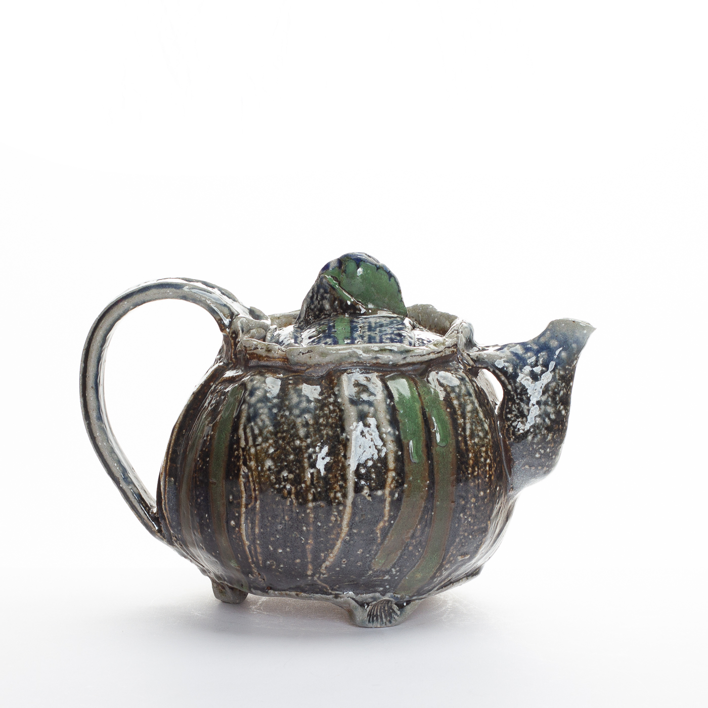 This stoneware teapot is hand-built retaining the soft quality of the clay. Slip is applied and the teapot is fired with sodium vapour glazing which adds richness of colour and emphasises the marks and rhythms of making.