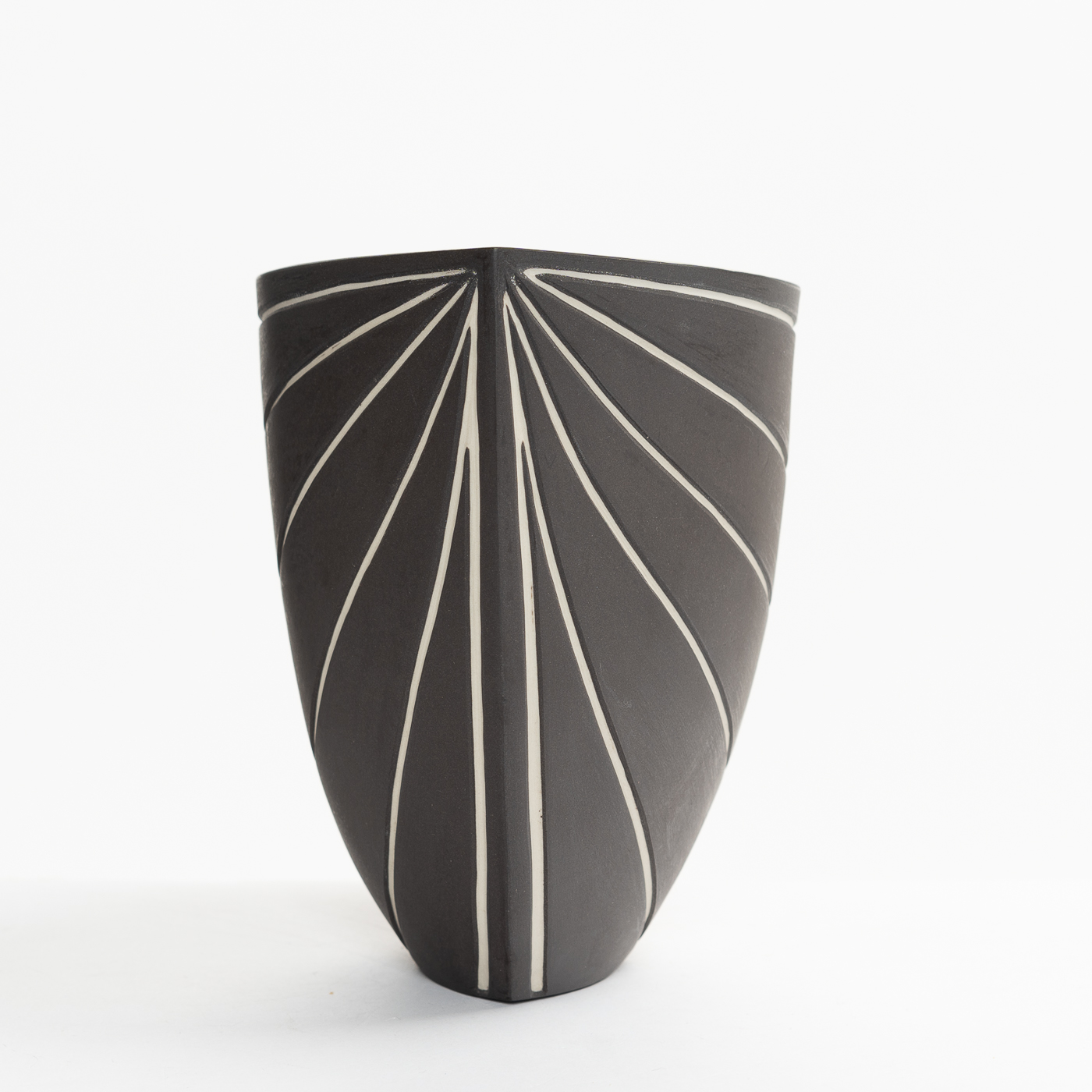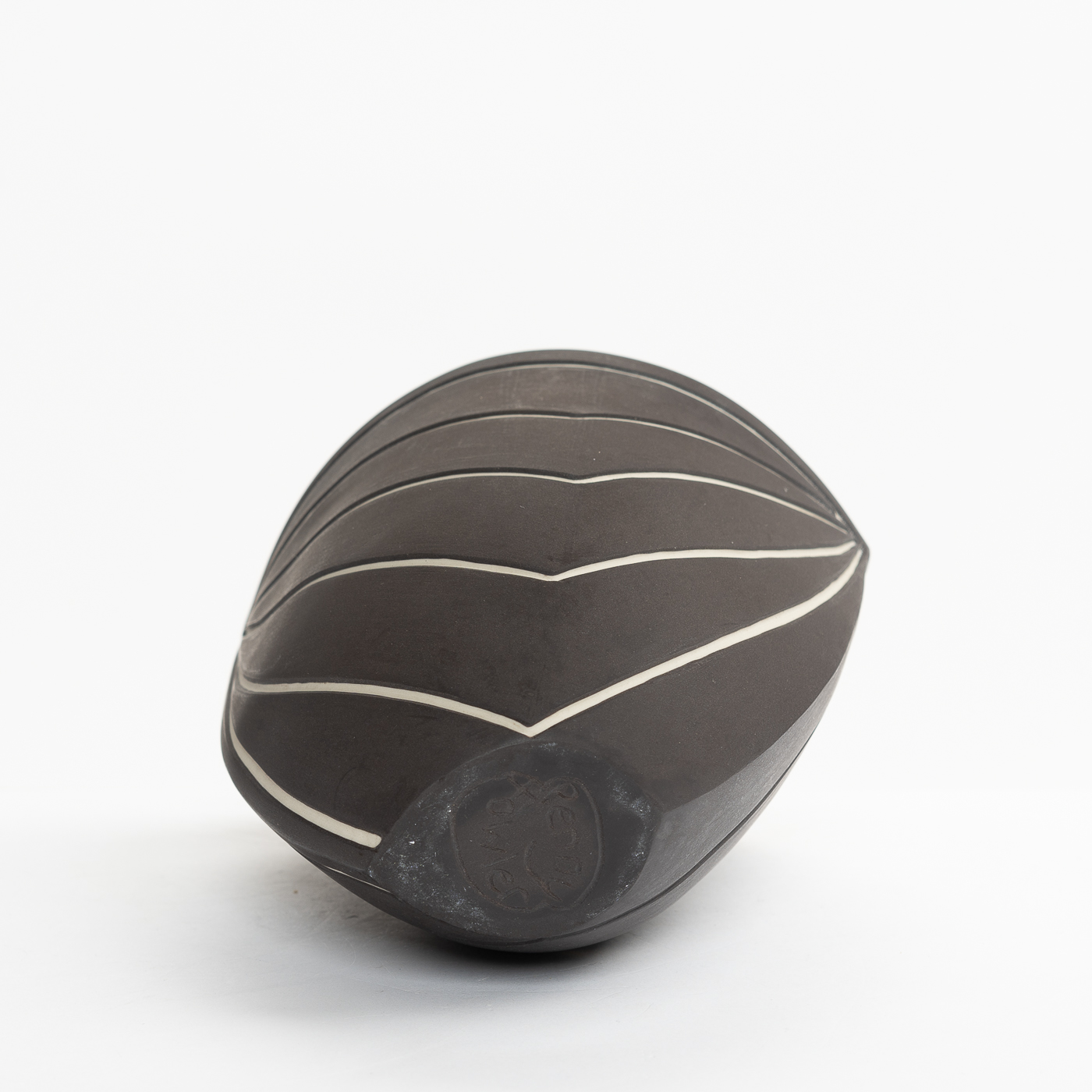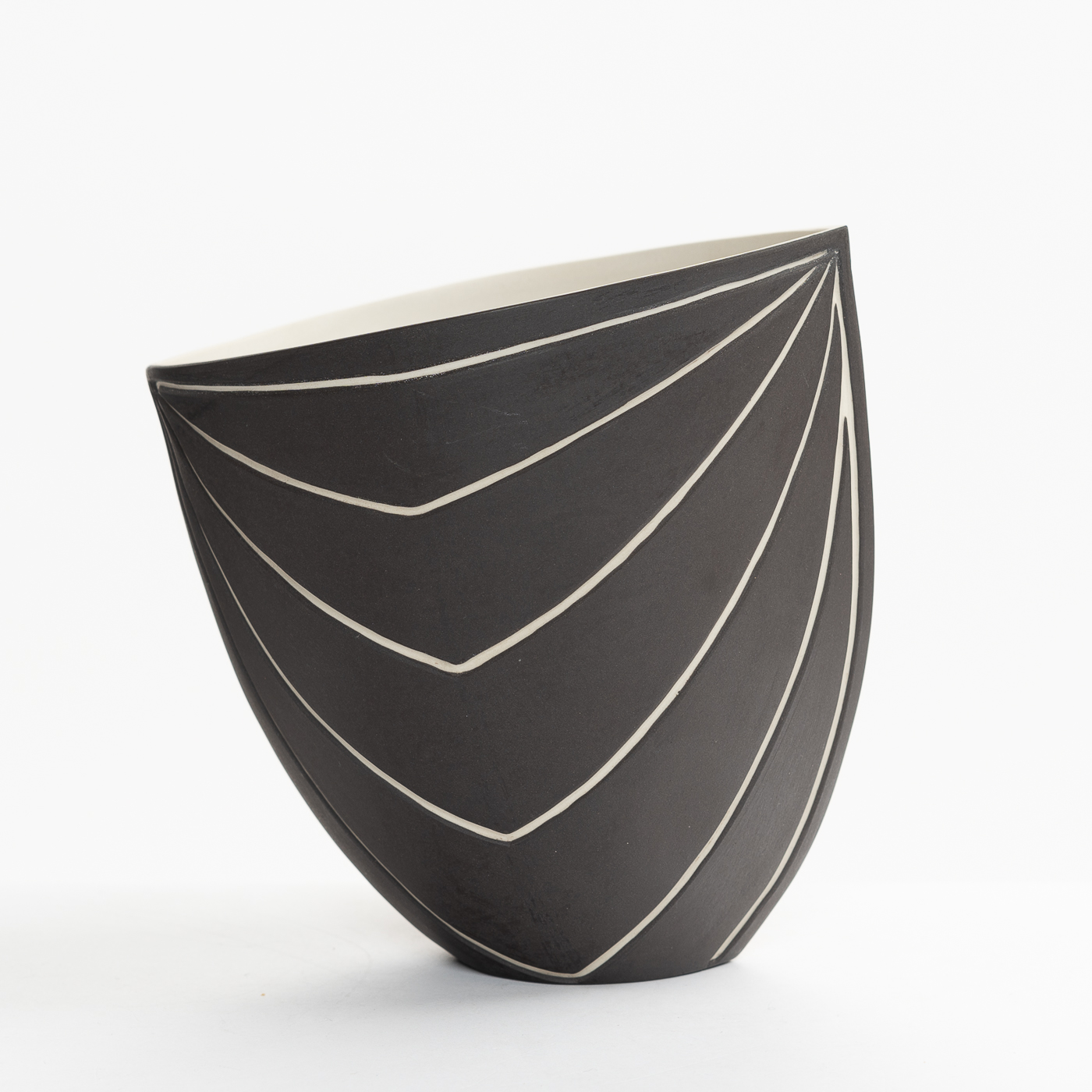 This beautiful vessel is cast in porcelain, hand carved and finely sanded to achieve a natural, smooth, pebble like quality of surface.