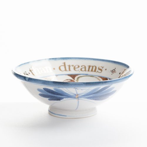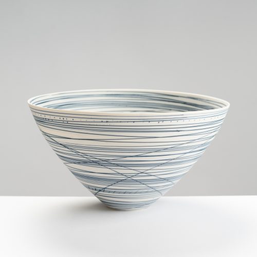 He is inspired by Hungarian and Romanian slipware from the 1800s and by English country pottery. Recently his work has explored colour and abstract patterns in strong forms that capture the ebb and flow of the sea and the landscape of South West Dorset.