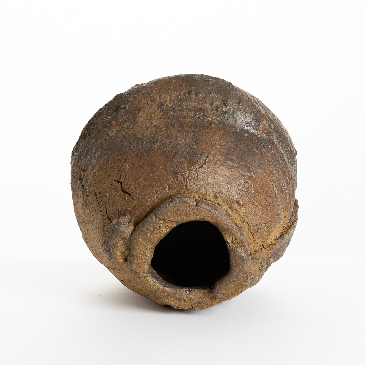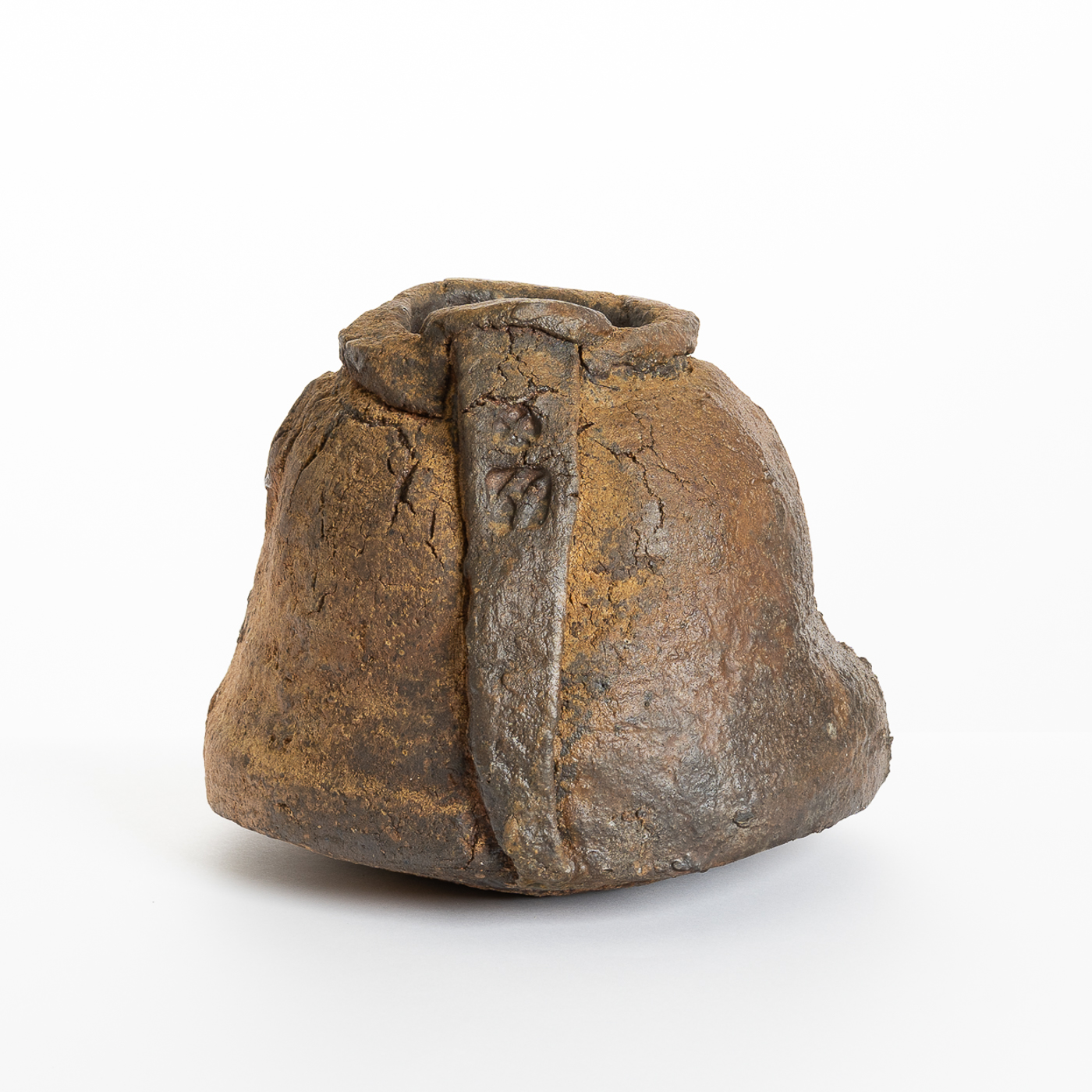 Loosely thrown, this wood-fired stoneware sculptural vessel is influenced by the farm environment in which Charles lives and works. Discarded farmyard scrap, mud on tracks drying and cracking, trampled by sheep are some of the ‘gifts’ that provide inspiration. Charles works with the clay as it presents itself, working into it rather than being primarily concerned with surface. Natural shapes incline to simplicity even when complex.