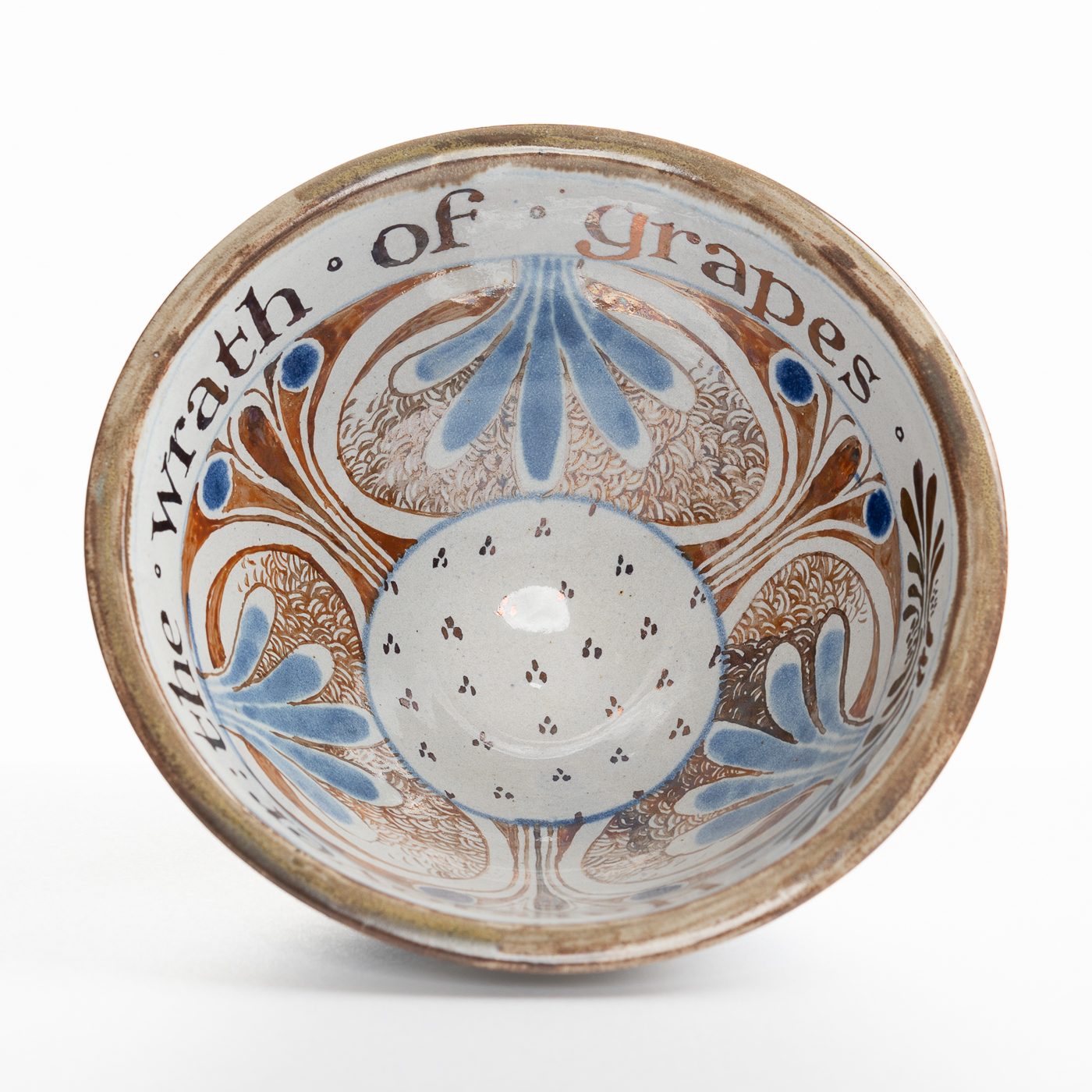 Since 2000 Owen Thorpe has been producing ‘families’ of pots using recurring themes and he has been making bowls and plates with inscriptions. All his work is made using a soft stoneware, high fired with occasional further enamel firings.