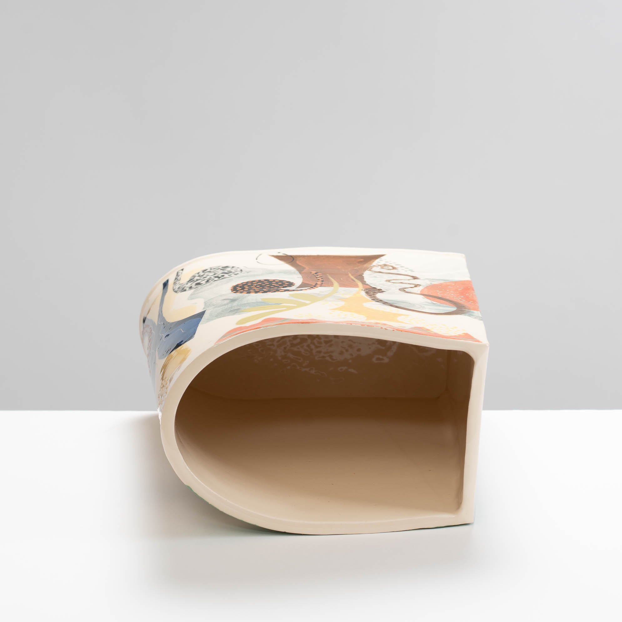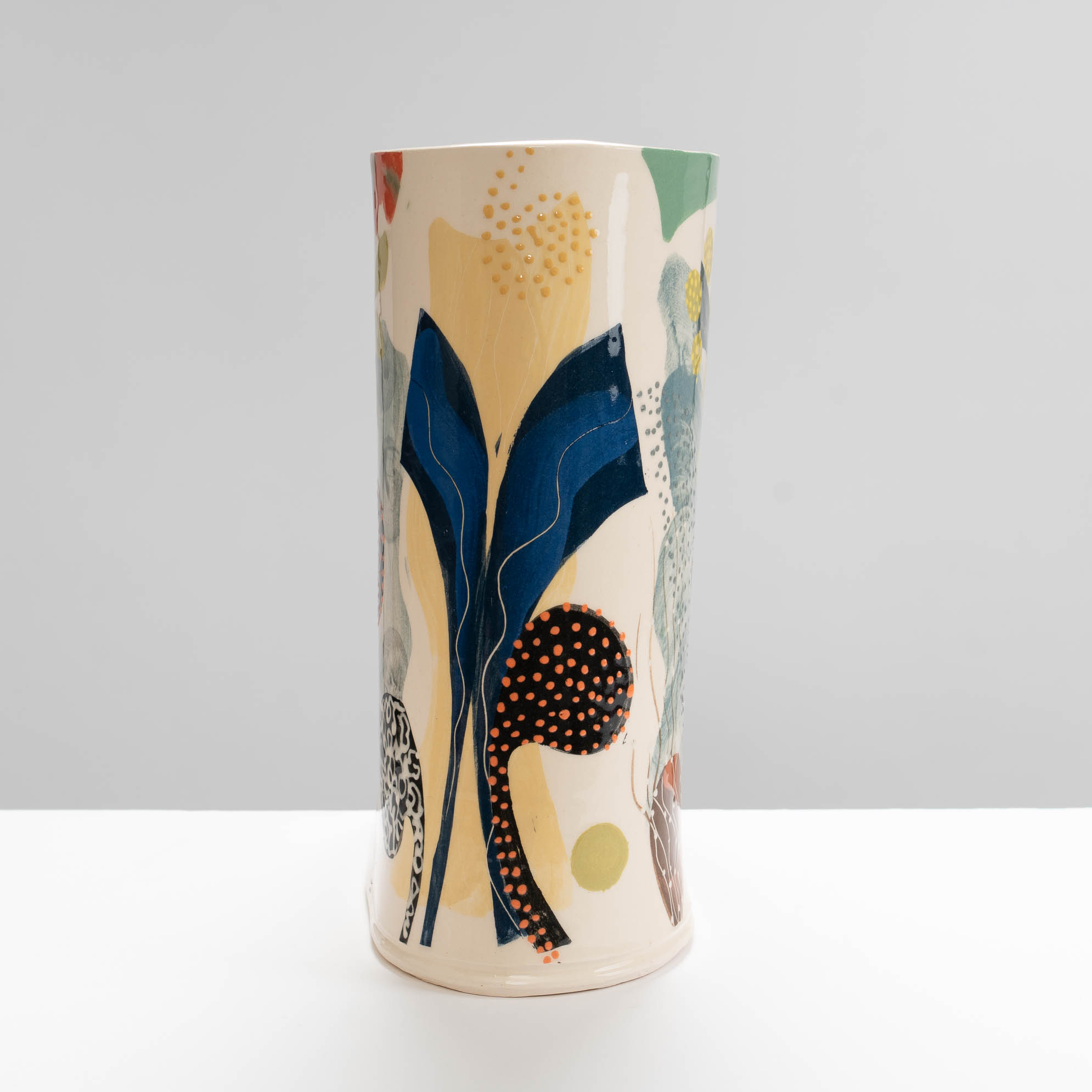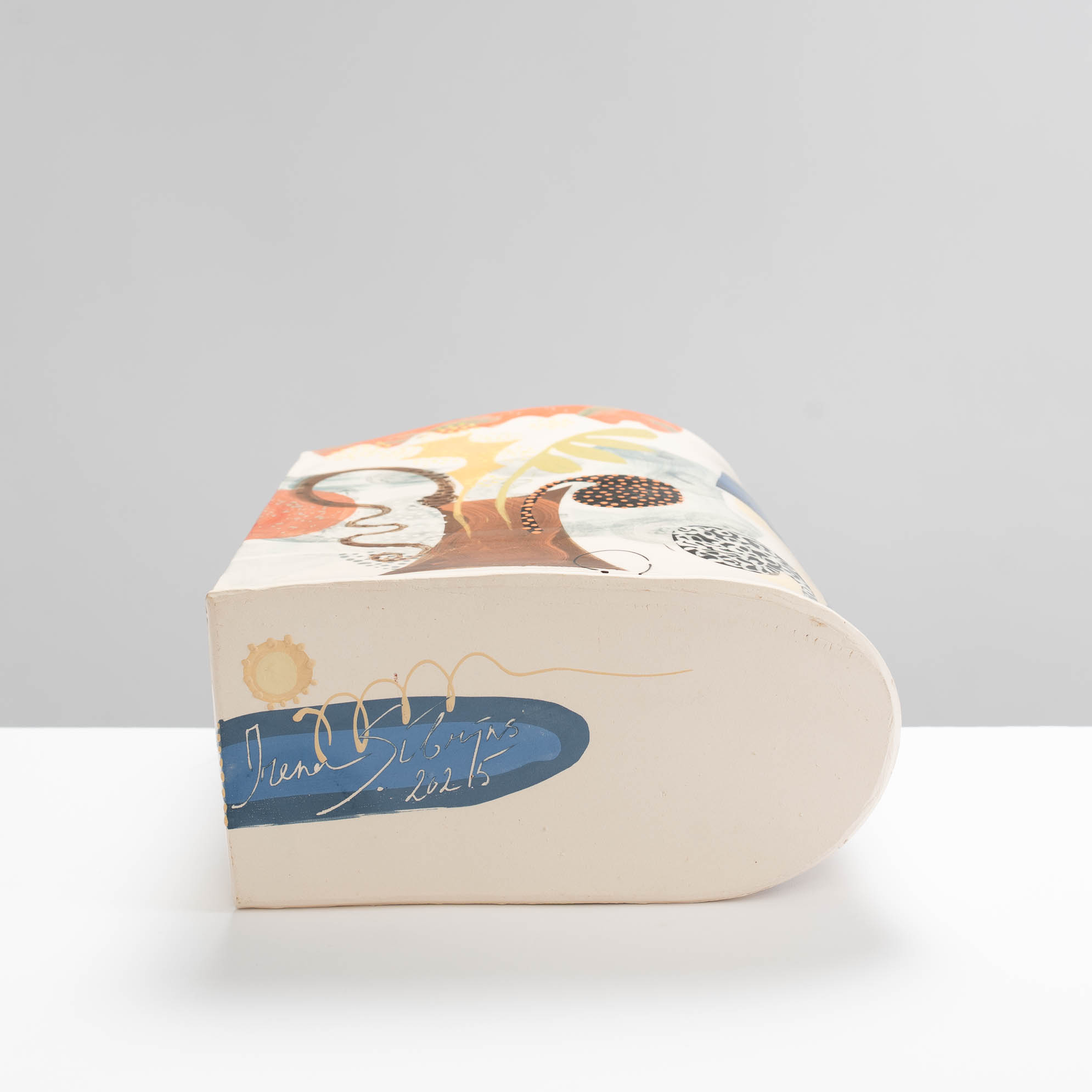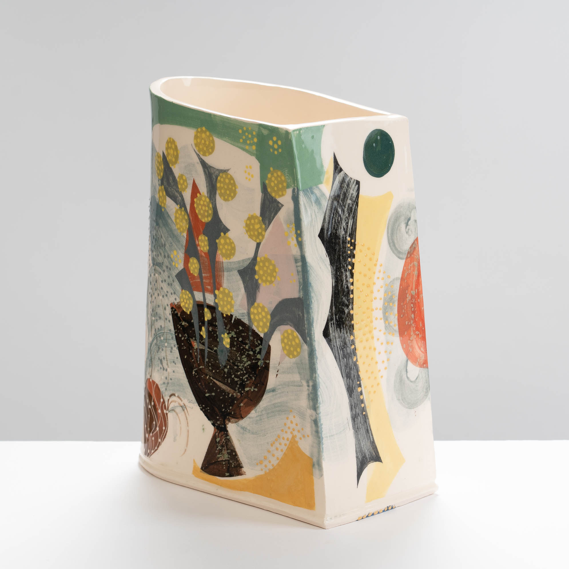 Full of character and charm, this earthenware vessel is slab-built and carefully decorated in Irena’s classic and animated slip decoration.