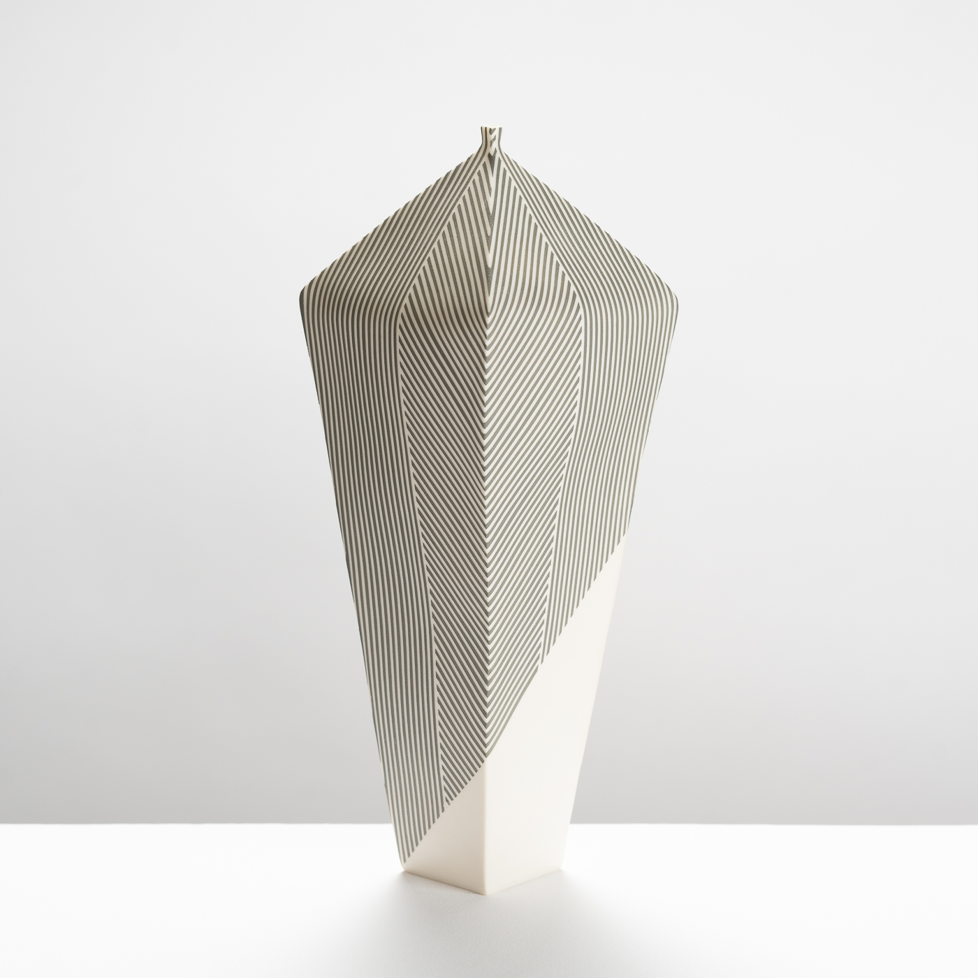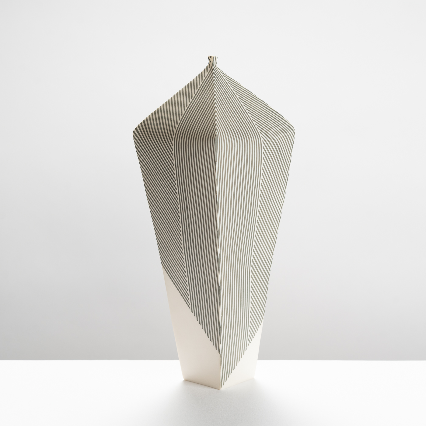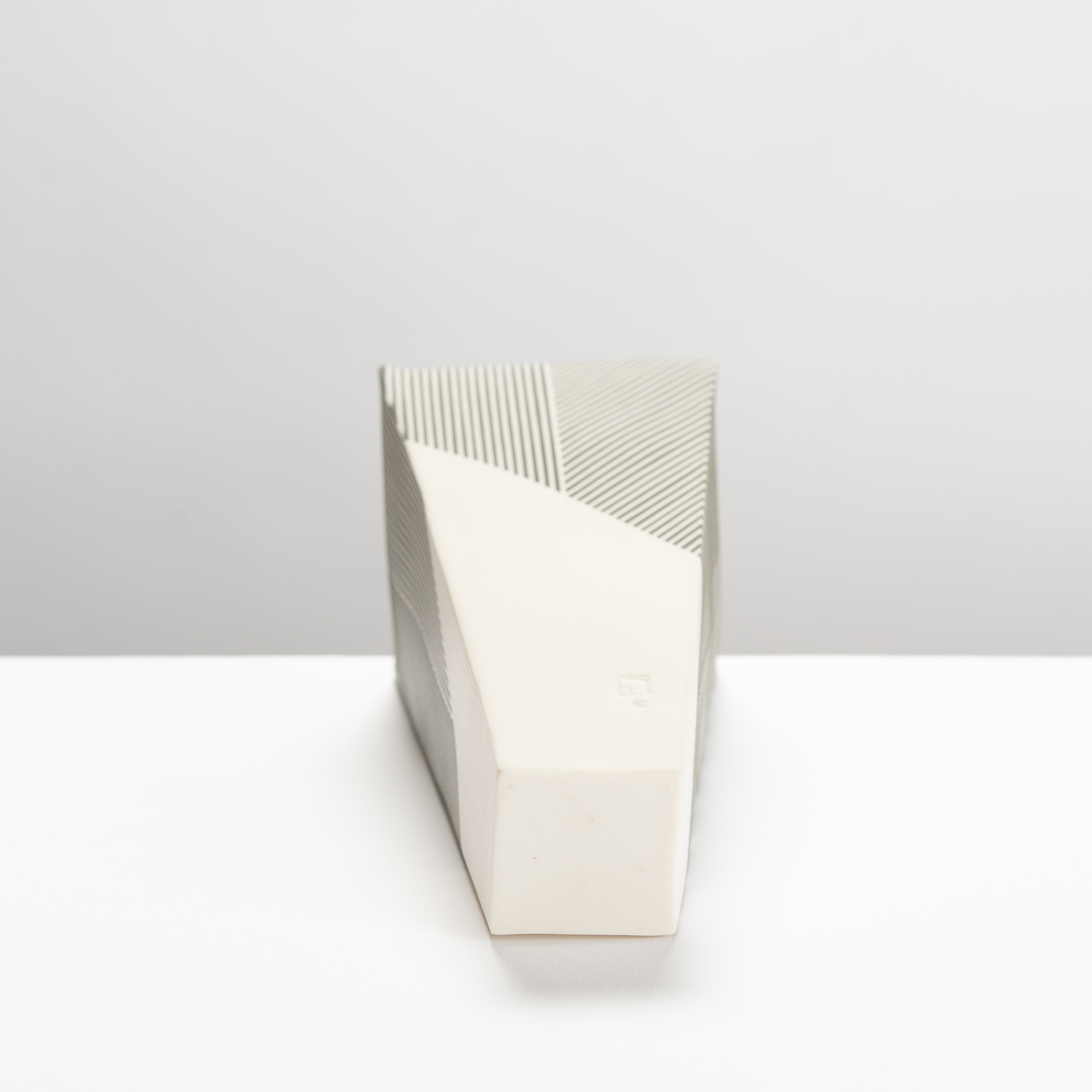 This vessel is hand-built with thin sheets of porcelain. The precision in Justine’s making results in light and delicate forms that highlight the beauty and qualities of the material.