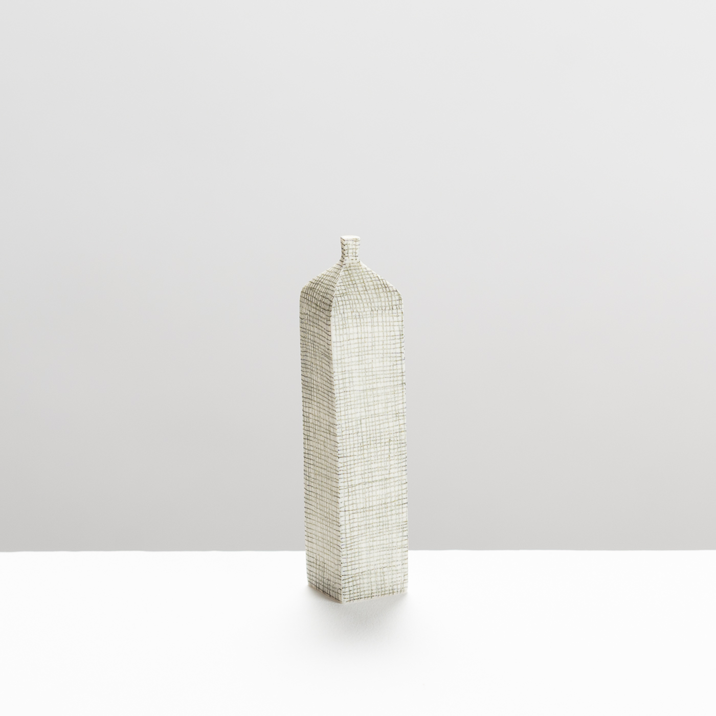 This vessel is hand-built with thin sheets of porcelain. The precision in Justine’s making results in light and delicate forms that highlight the beauty and qualities of the material.