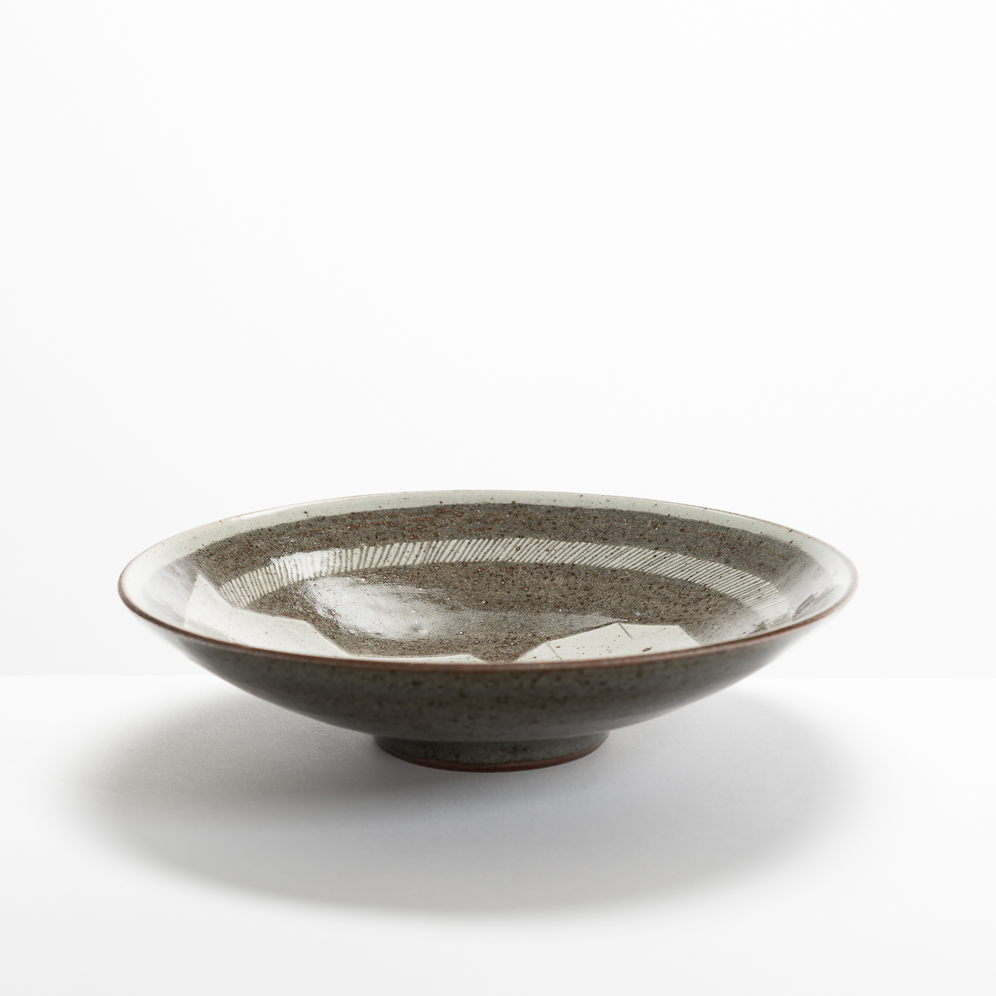 This stoneware bowl is the perfect example of collaborative craftsmanship. It features careful inlaid decoration with a glazed surface by Tilla, upon a beautifully thrown bowl formed by her partner James.