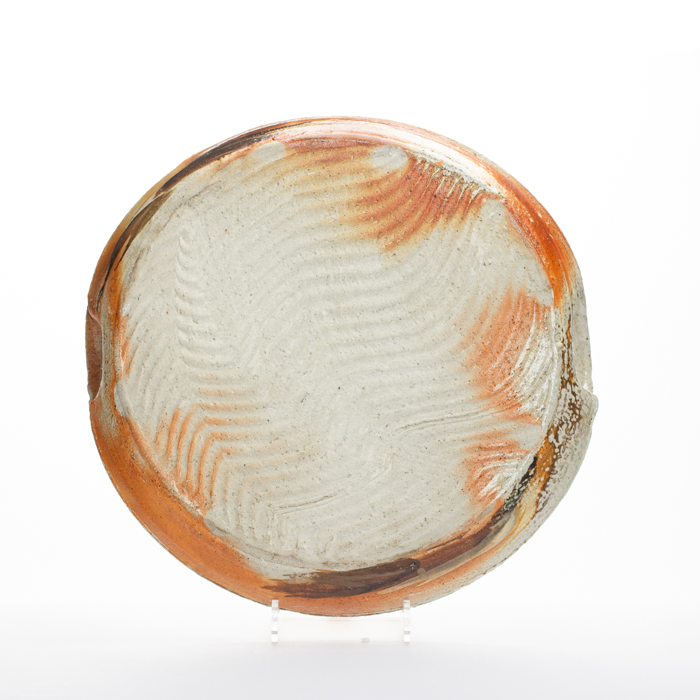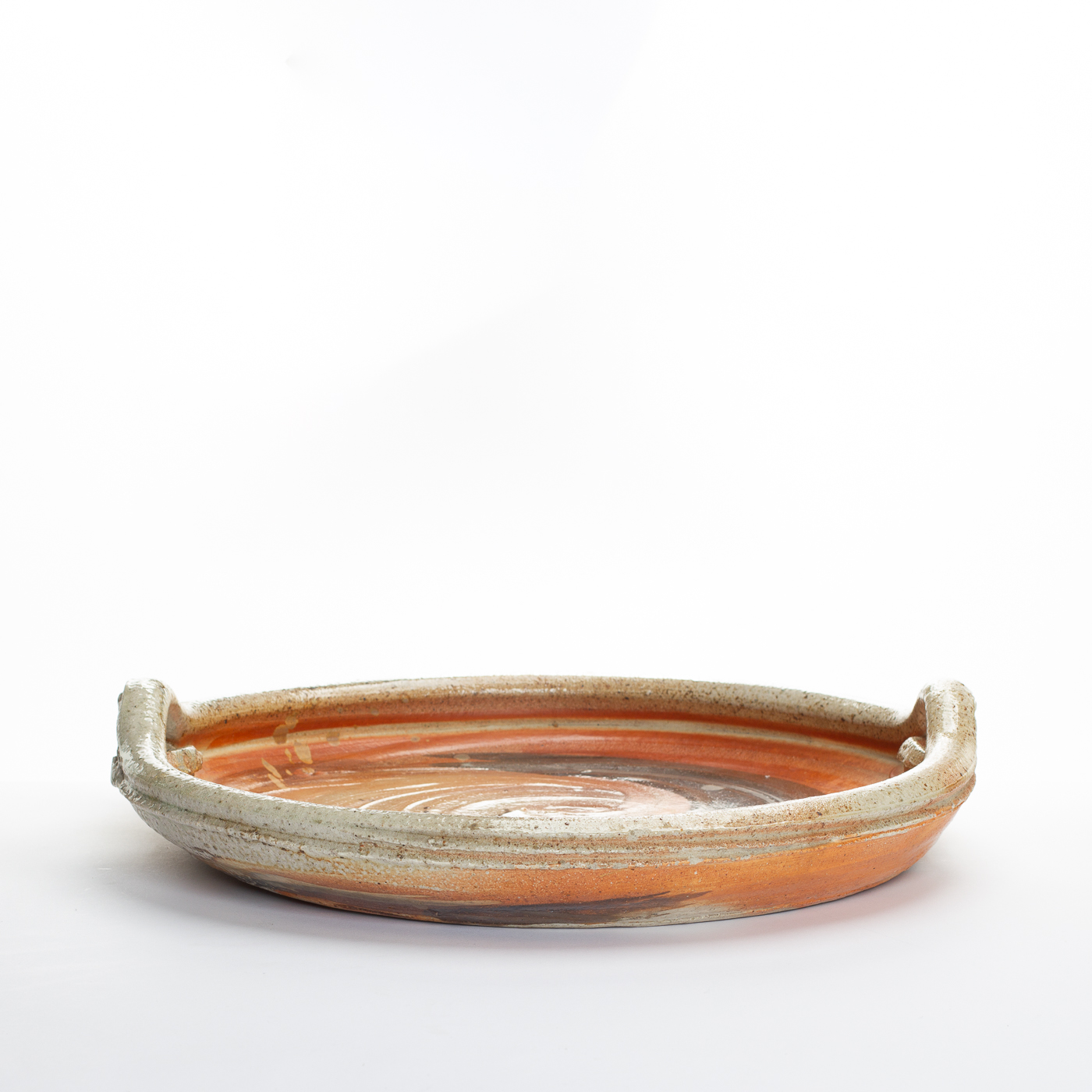 This stoneware dish is wheel-thrown retaining the soft quality of the clay. Slip is applied and the dish is fired with sodium vapour glazing which adds richness of colour and emphasises the marks and rhythms of making.
