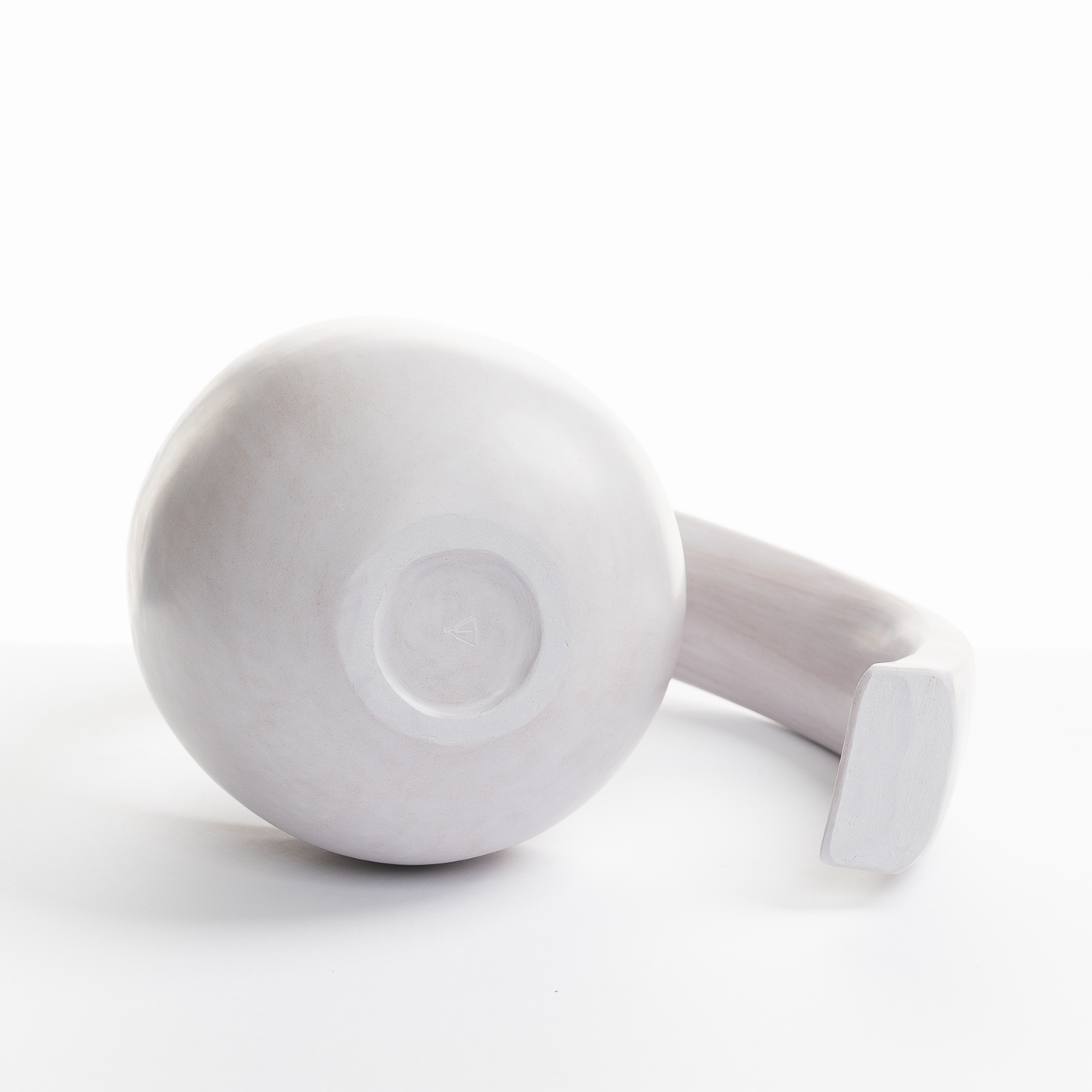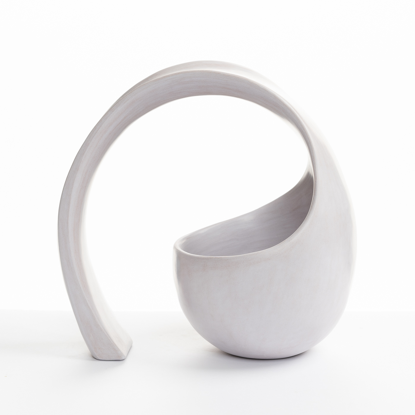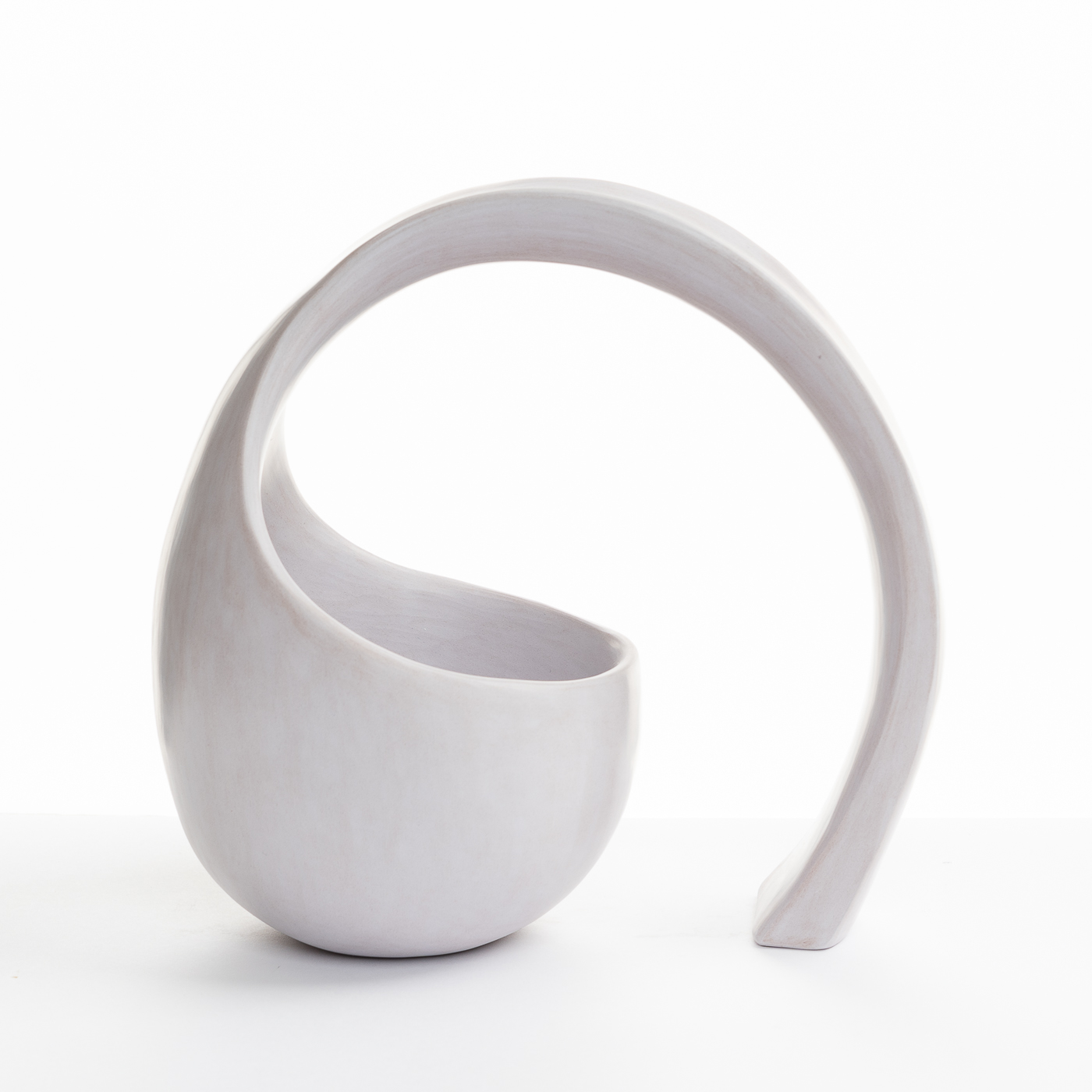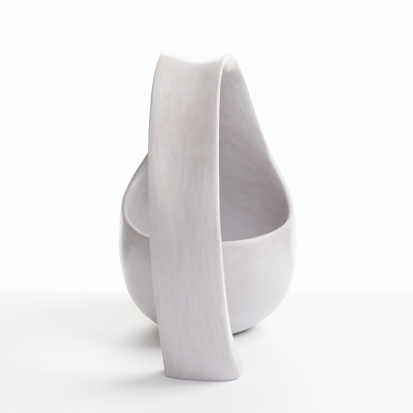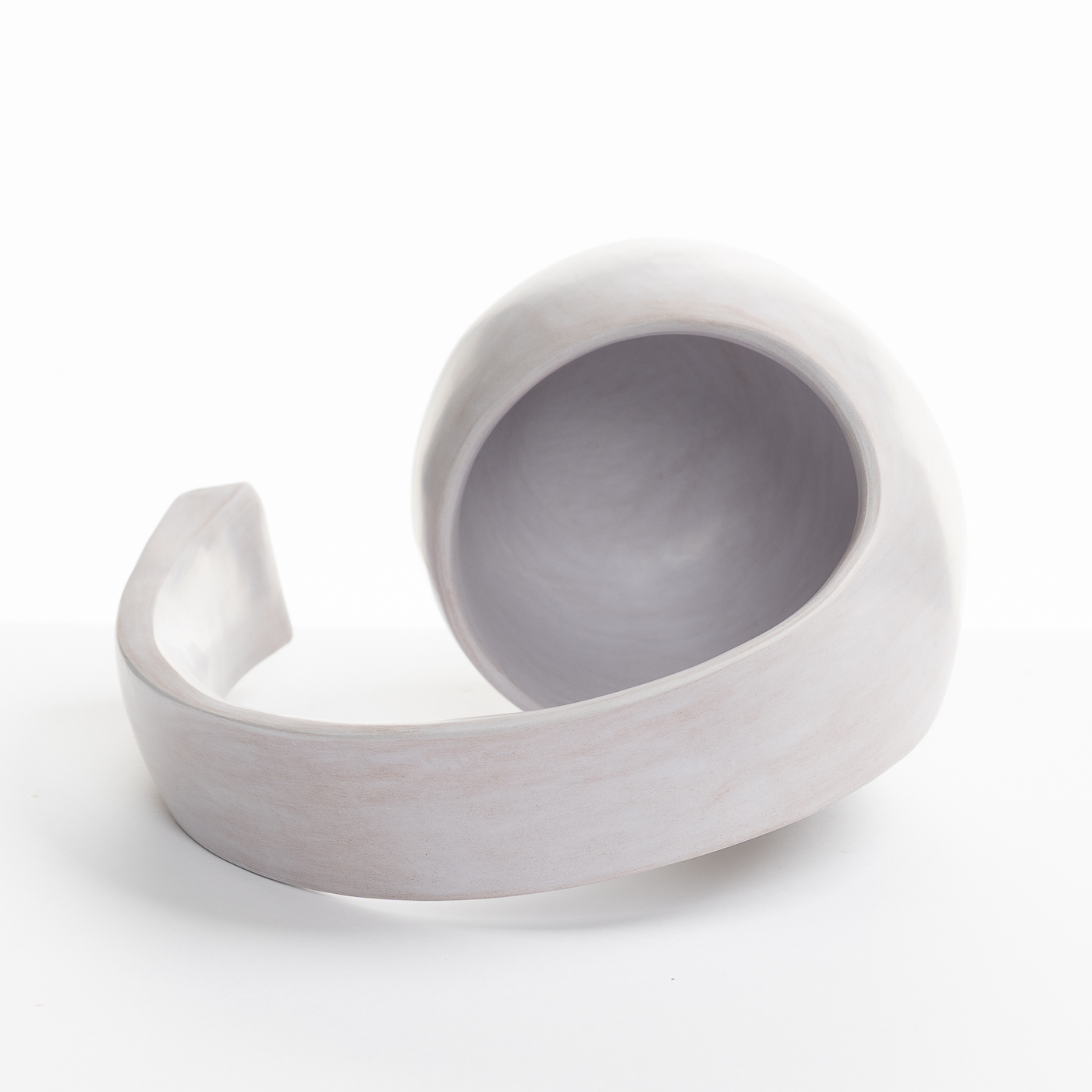 This sinuous sculpture is hand-built in a pale lilac stained earthenware clay body, and finished by meticulous burnishing which creates a soft sheen accentuating the form.