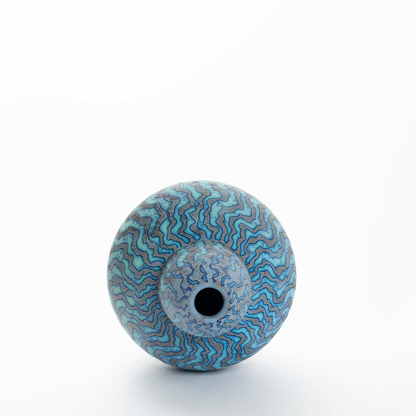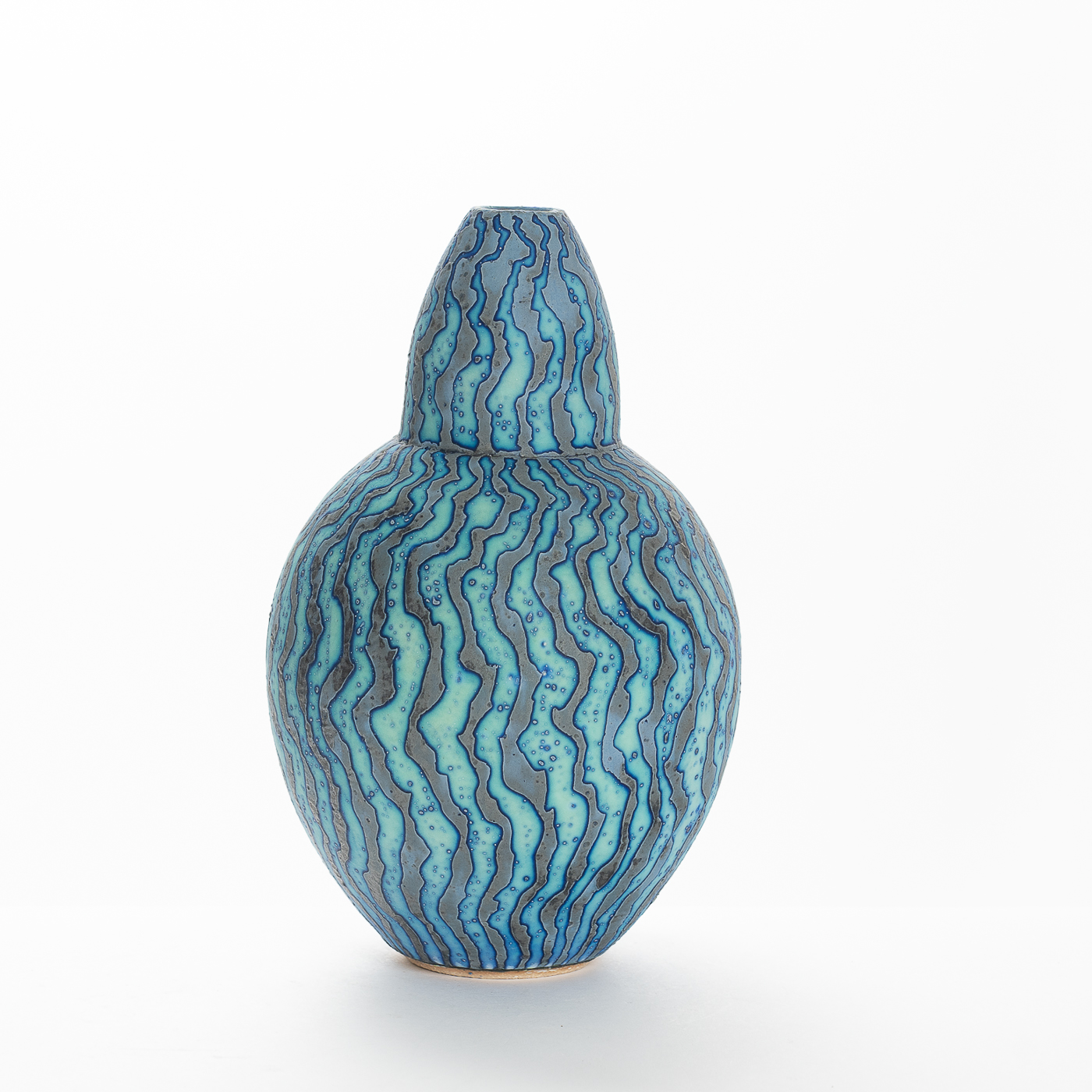 Contrasting coloured markings with a wavy design envelop this vessel, radiating from the base to the opening, creating a naturally mesmerising effect. Wheel-thrown and decorated using Peter Beard’s signature wax resist technique.