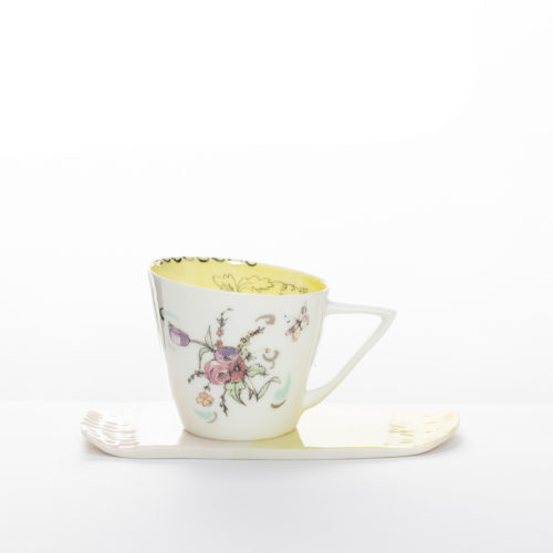 This cup and saucer set is slip-cast in porcelain in a spiral form.