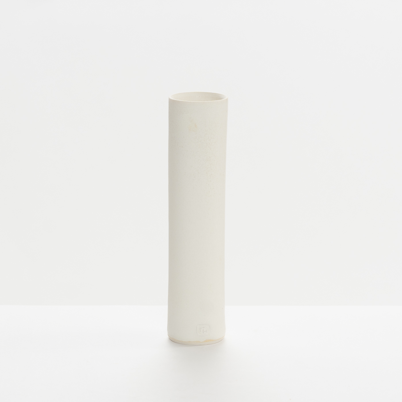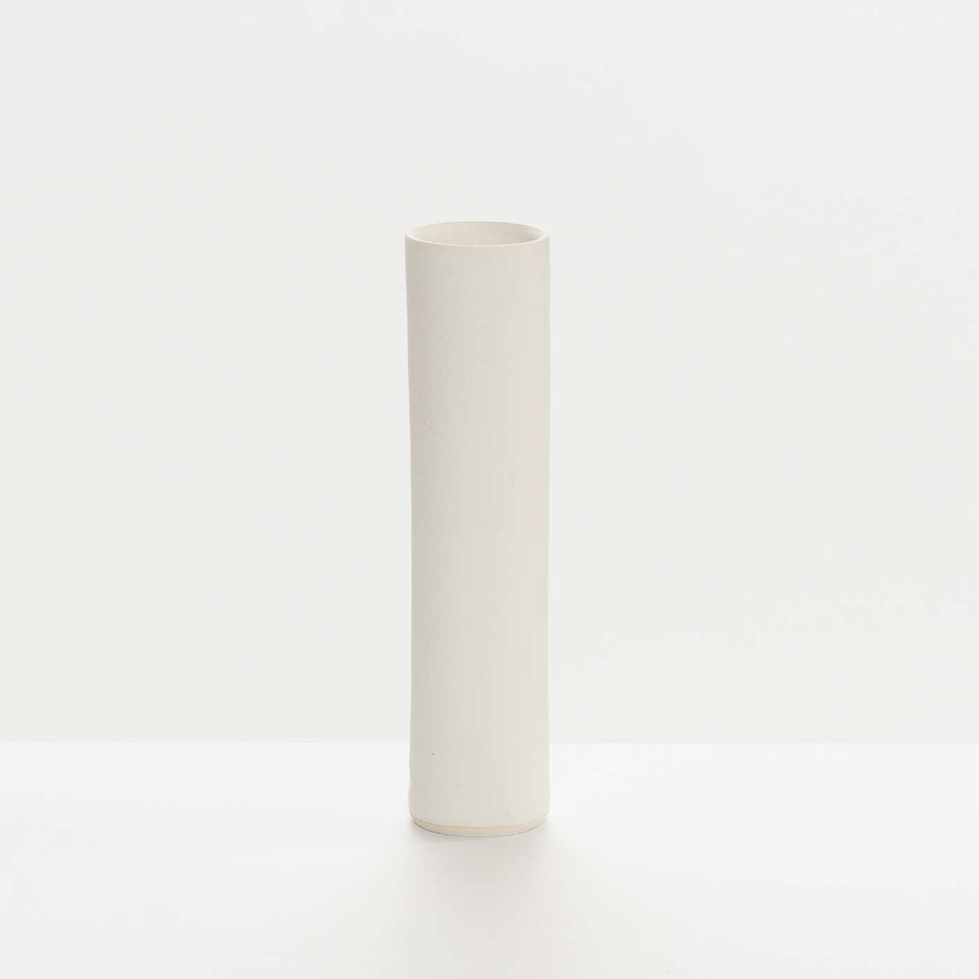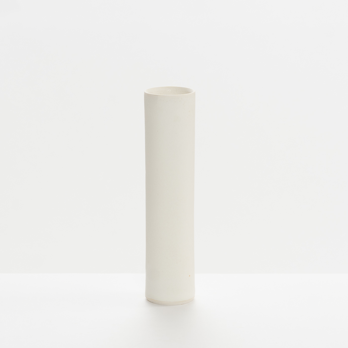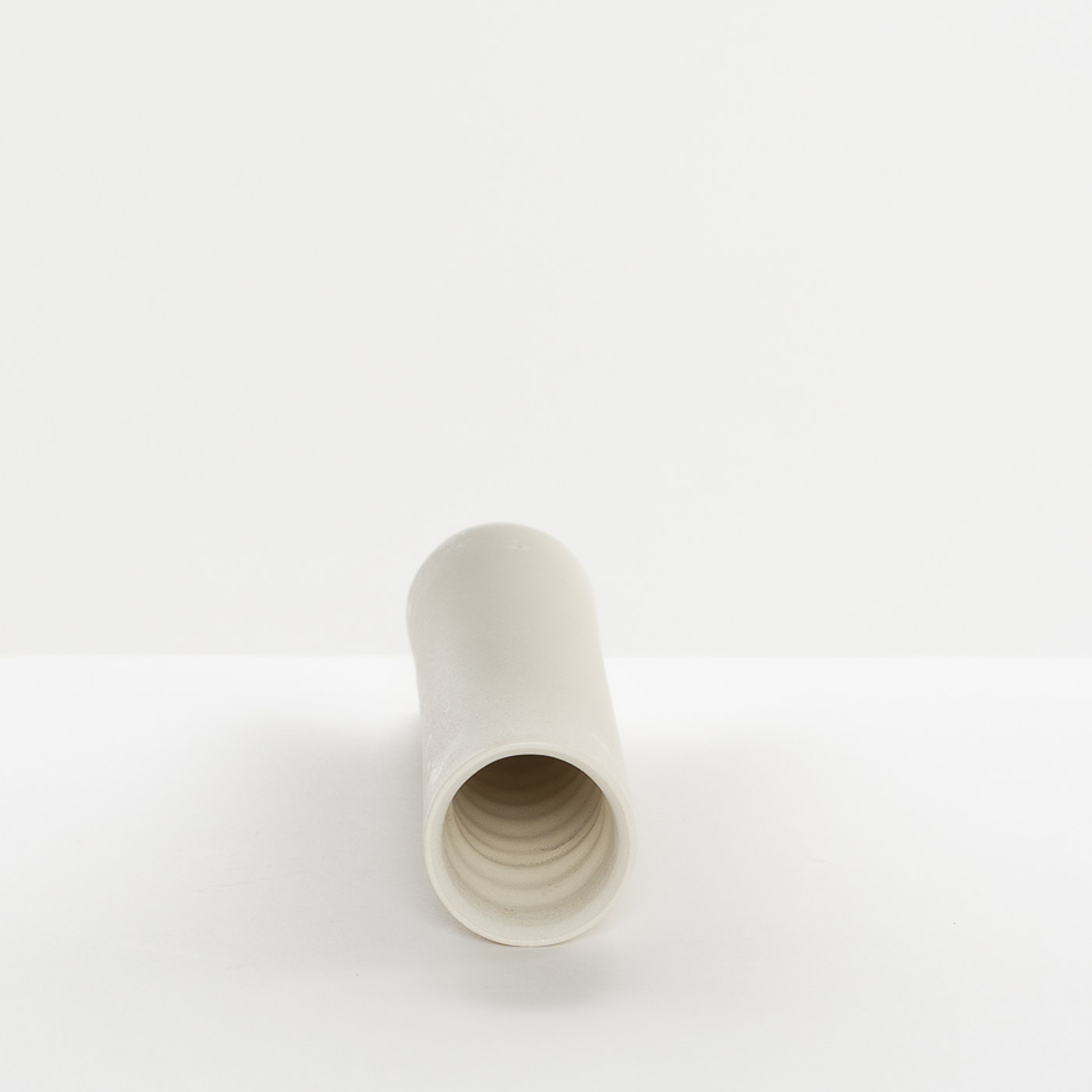 This vase is wheel-thrown in porcelain. Inspired by the classical porcelain of China and Japan, it is decorated with a cream coloured glaze.