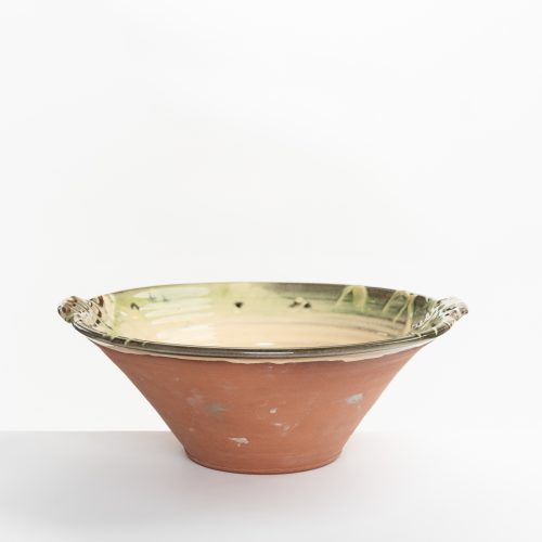 This wheel-thrown stoneware bowl features a brushed slip exterior and a rich soda-fired surface.