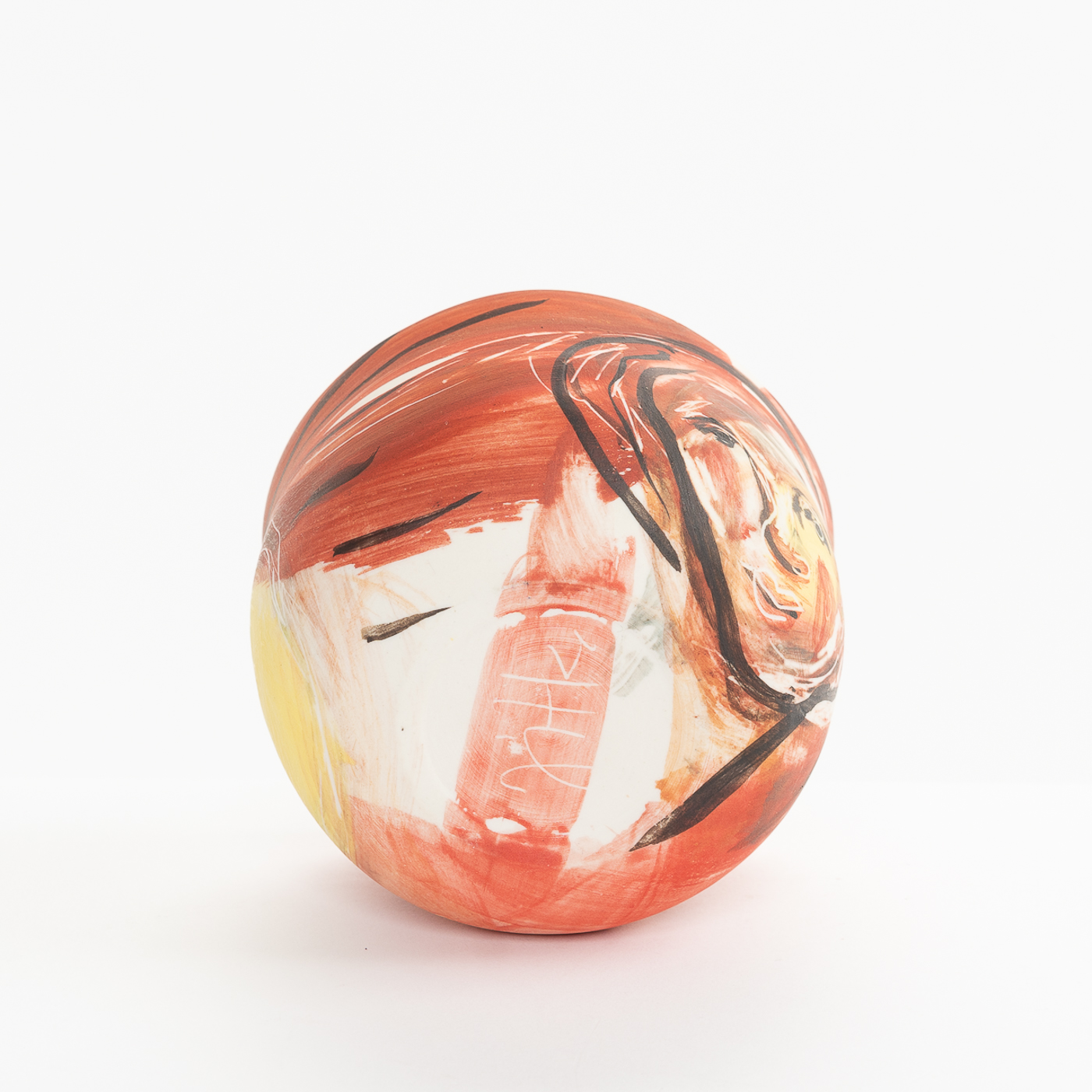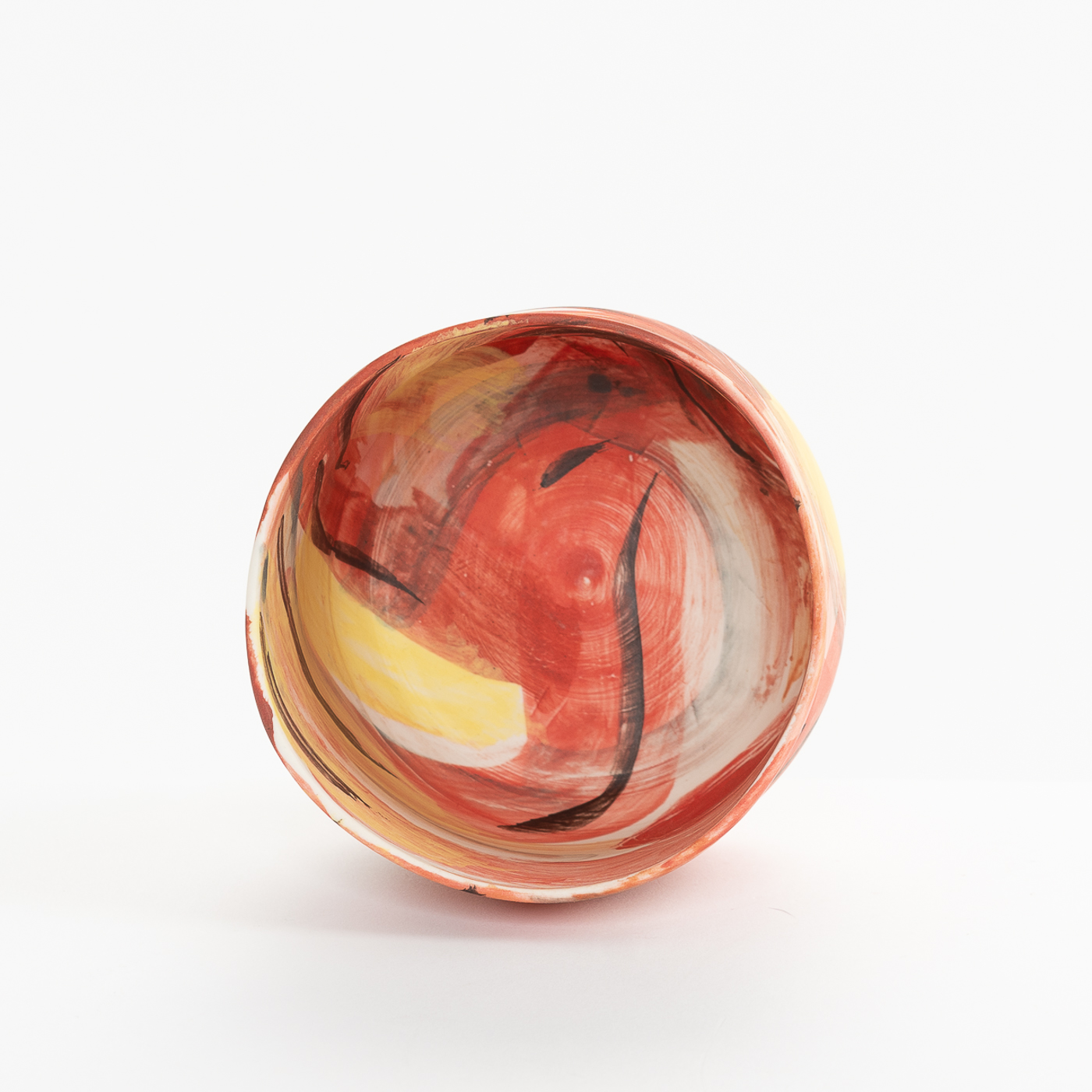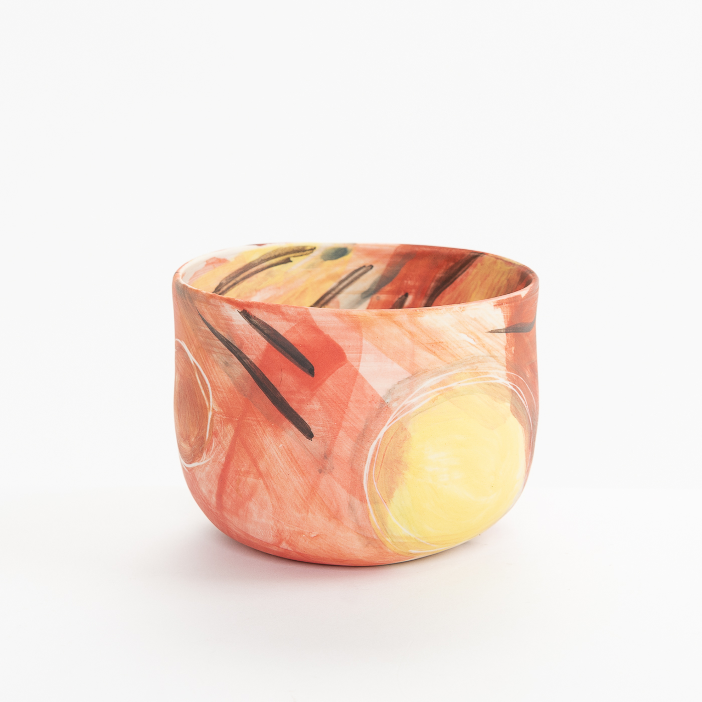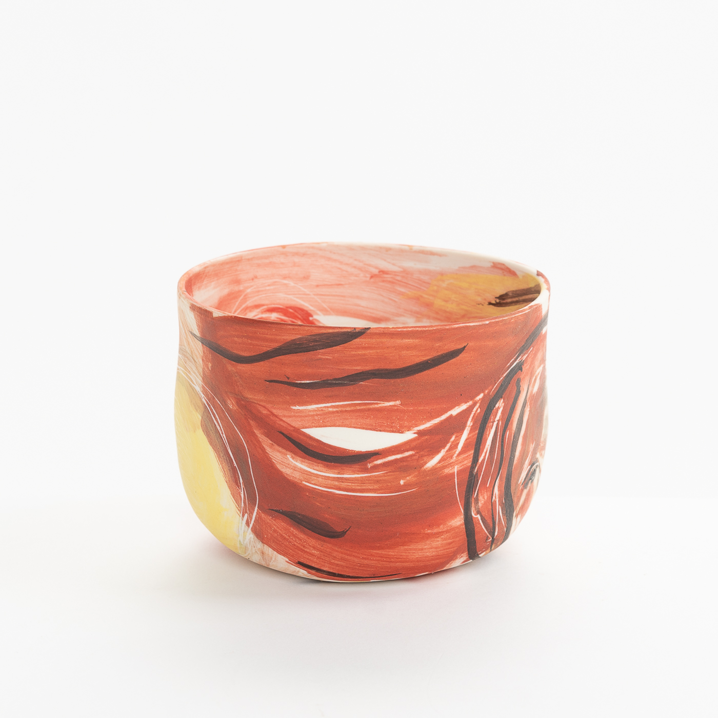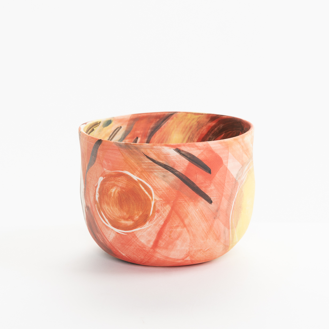 This porcelain bowl is hand-built with an expressive design on the whole surface. It is freely painted with slips, oxides and stains and decorated with sgraffito.