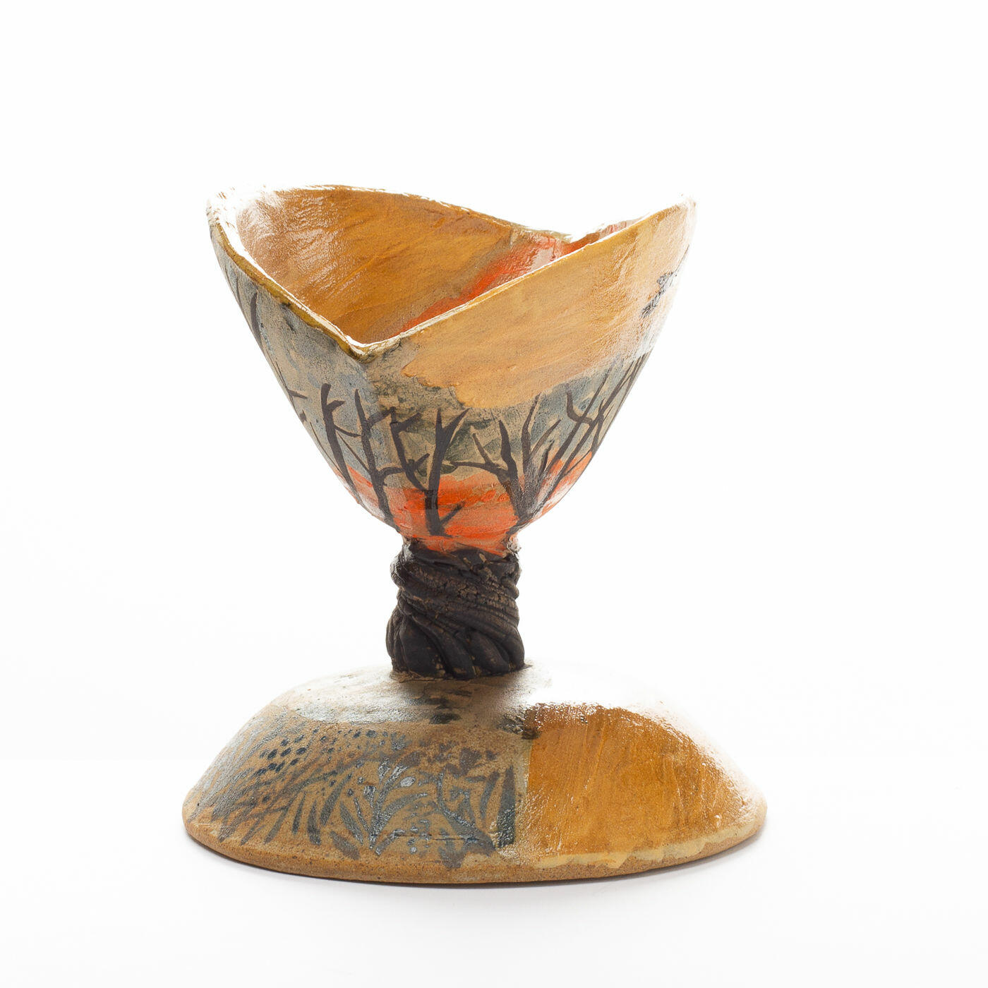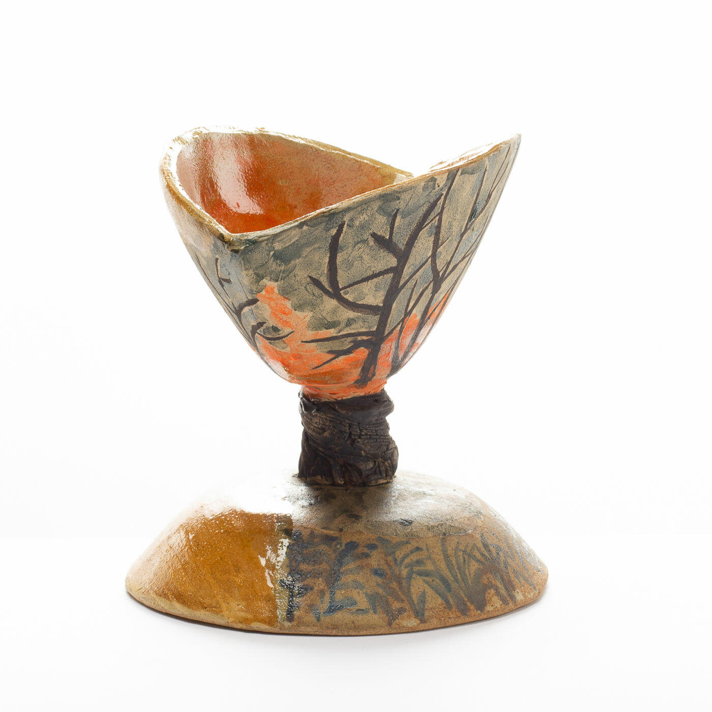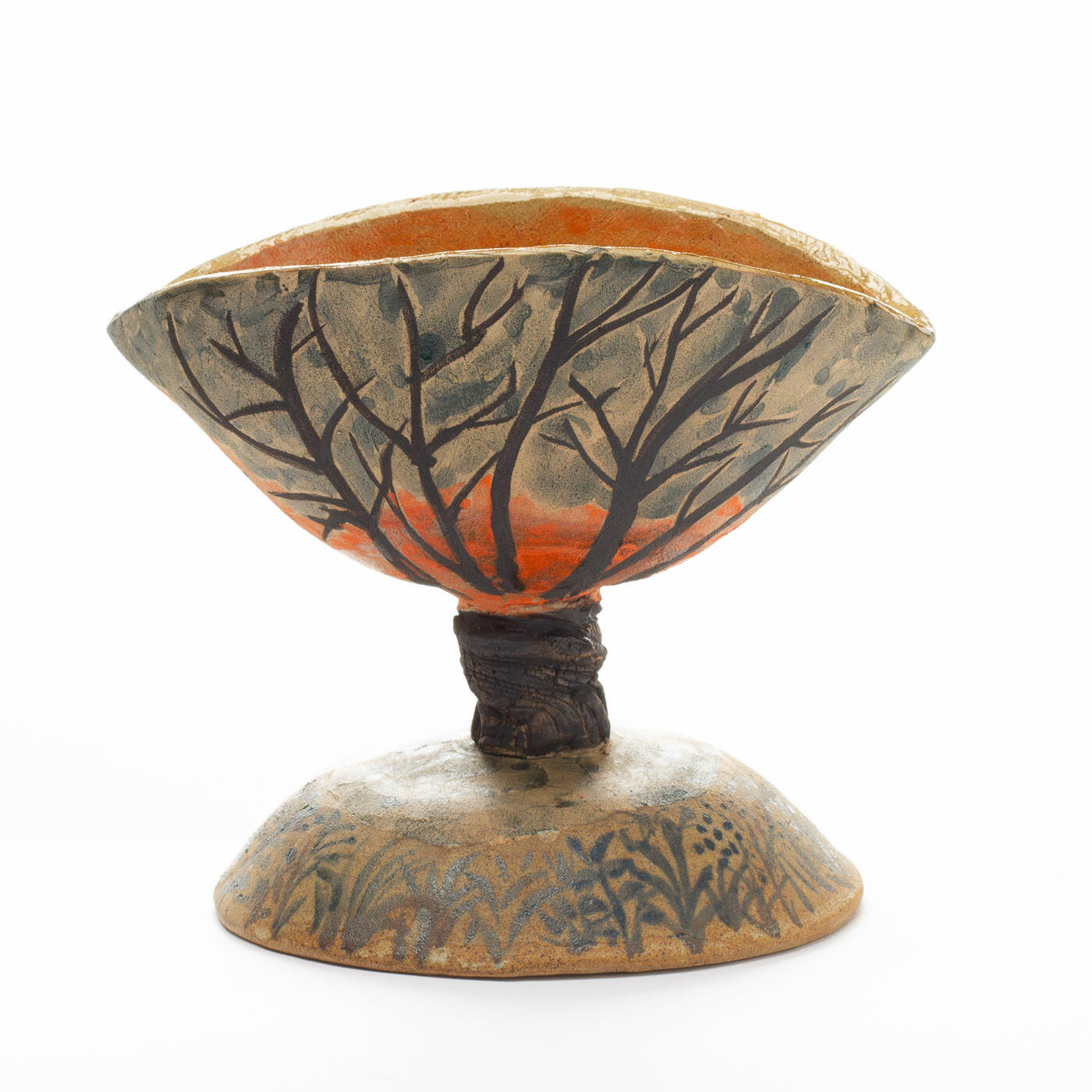 Tree of Life is an expression in clay of some of the wabi sabi qualities of tranquillity, solitude, reflection and profundity that Hiro grew up with in Japan. As with all her work, she hopes to evoke the spirit of nature in depictions of animals and birds in their habitat. This stoneware sculpture is hand-built and richly decorated with oxides and glaze resist.
