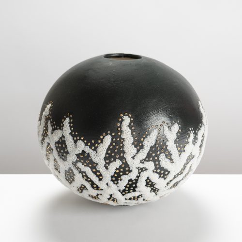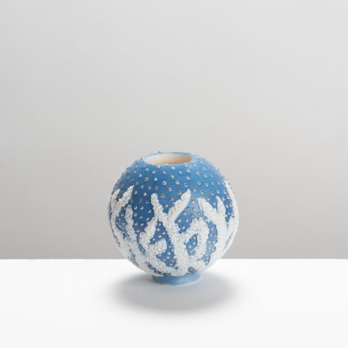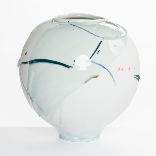 He admires the historically nomadic nature of ceramic ware. This tendency of pottery to move from one place to another, carrying with it commodities, aesthetics, and ideas, converges with his use of water as a decorative motif.