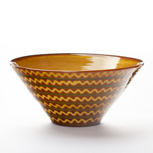 This bowl exemplifies Walter’s passion for design and imaginative creativity. Its wheel thrown form is adorned with sprigs, and features a characteristic orange peel texture, produced through the salt glaze firing process.