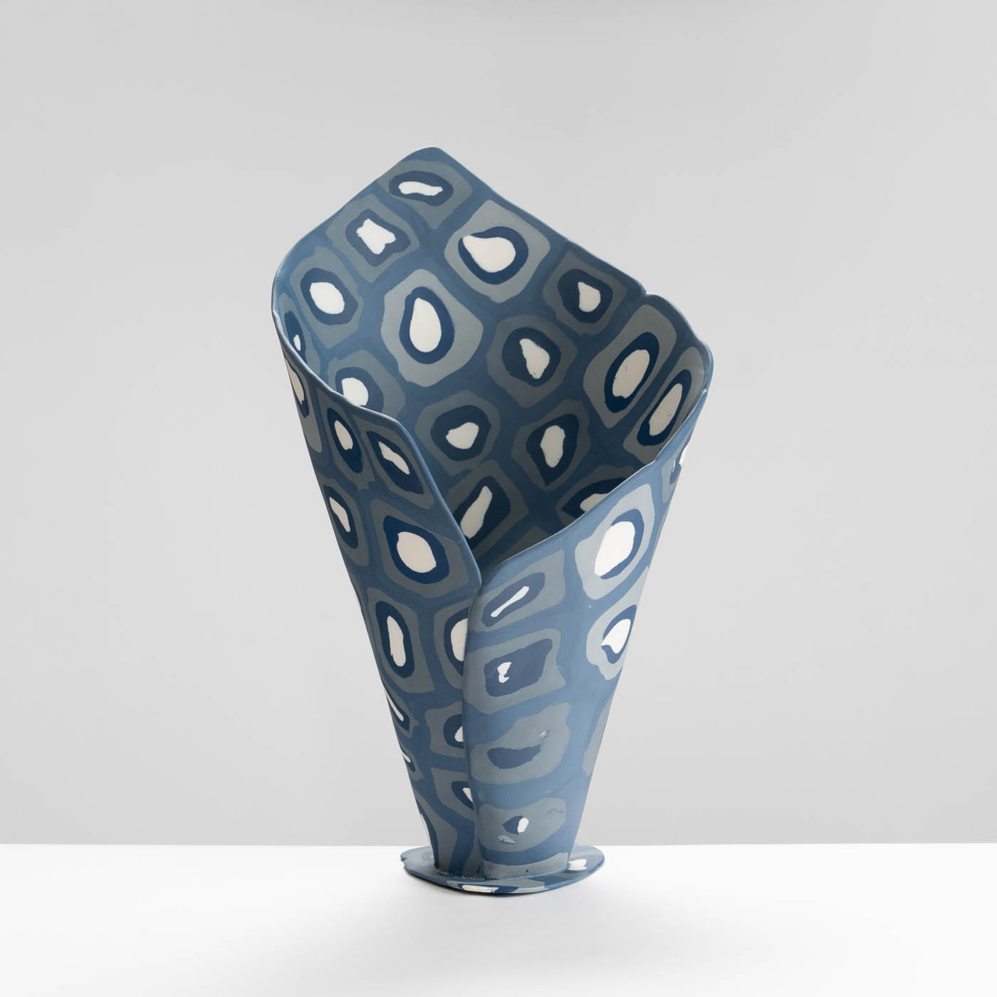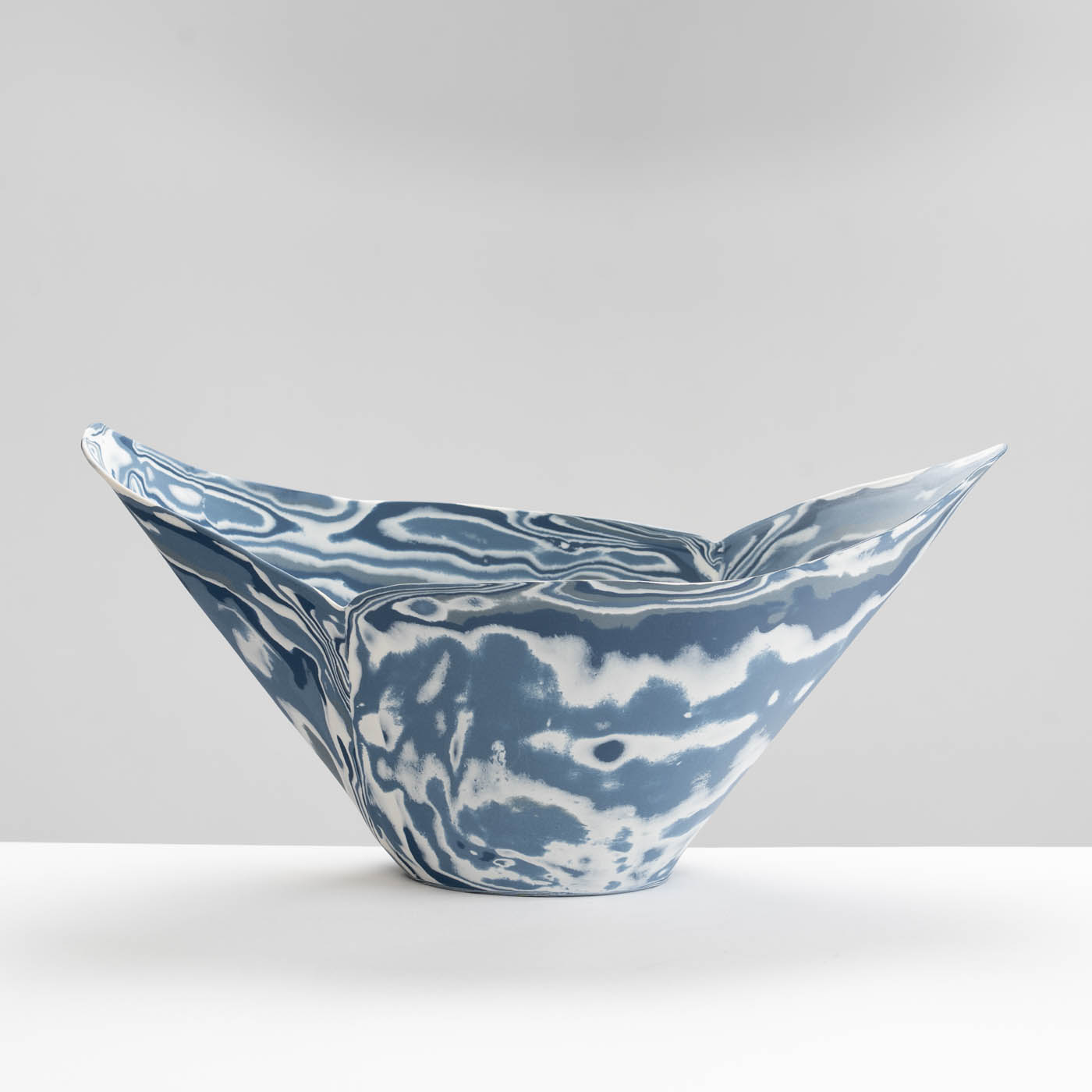 The signature mesmerizing patterns mimic the vivid diversity of nature. Using the nerikomi method, the patterns are meticulously prepared by repeated cutting and layering of plain and coloured porcelain sheets.