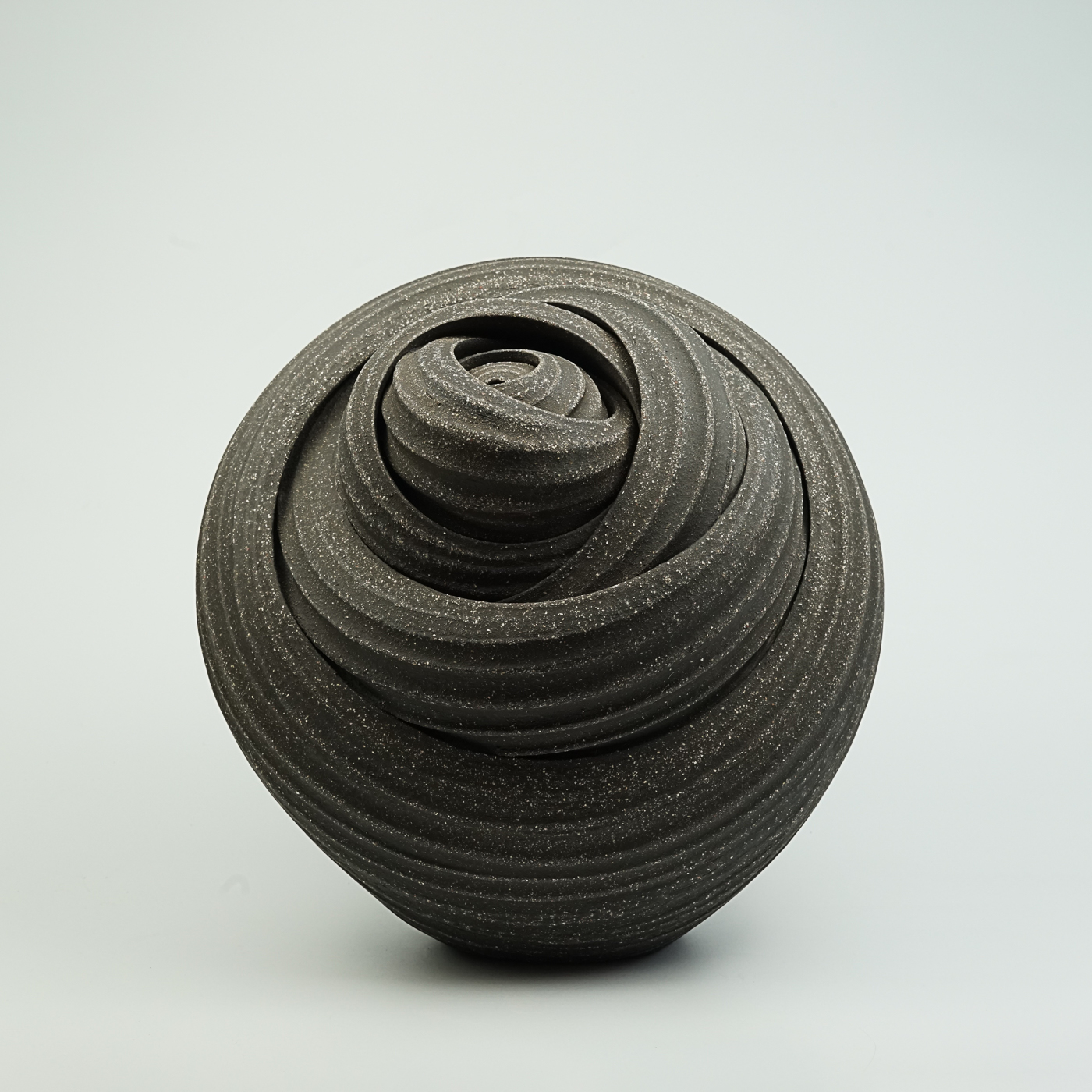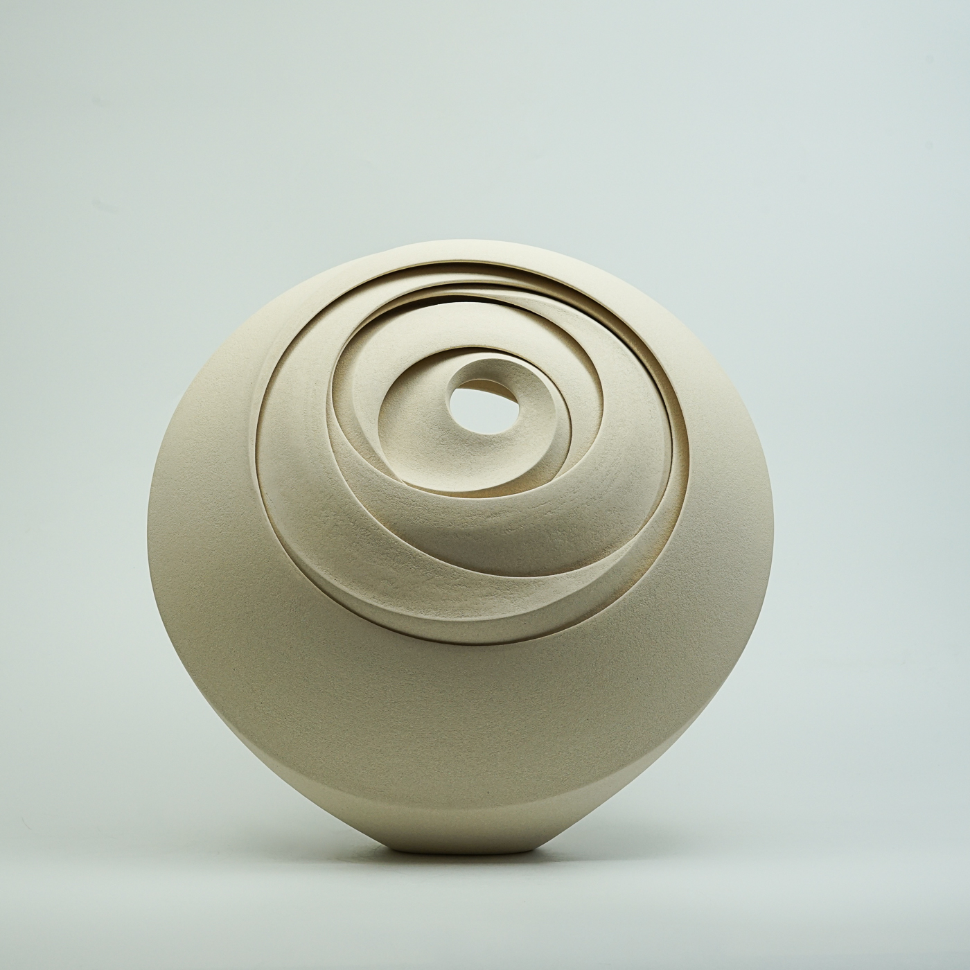 Matthew Chambers specialises in ceramic sculptures constructed from multiple sections built on the potter’s wheel. Finished with integral colour, unglazed but polished, each piece expresses an abstract beauty through its depth, pattern, and repetition.