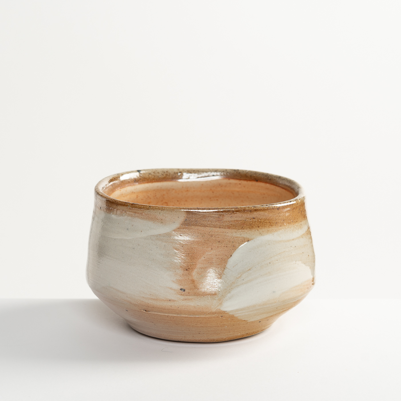 Micki makes wood-fired salt-glazed tableware, fired to a high stoneware temperature. Travelling in India in 1968, Micki came across their ubiquitous everyday earthenware pots. She loved the connection between the earth and the pots and was introduced to throwing on a Leach wheel by Gurcharan Singh of Delhi Blue Potteries.