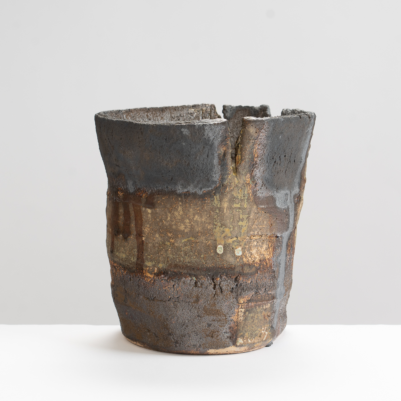 Rachel Wood’s ceramics are noted for their expressive, visceral, yet calm and considered qualities. Animated and complex surfaces, swathed with layer upon layer of slip and glaze, are carefully nurtured to life and so compel the viewer to their mysterious and hidden depths.