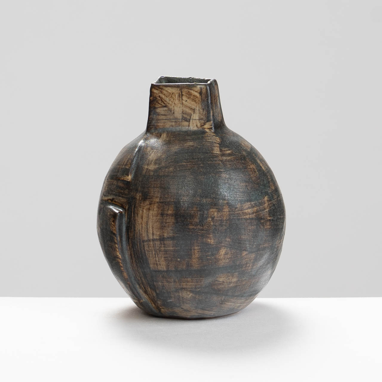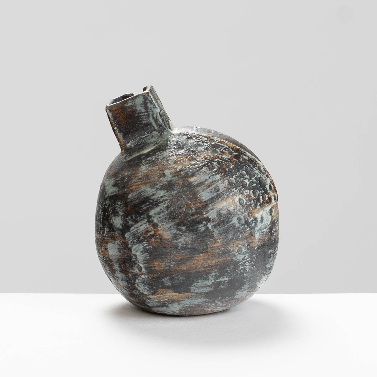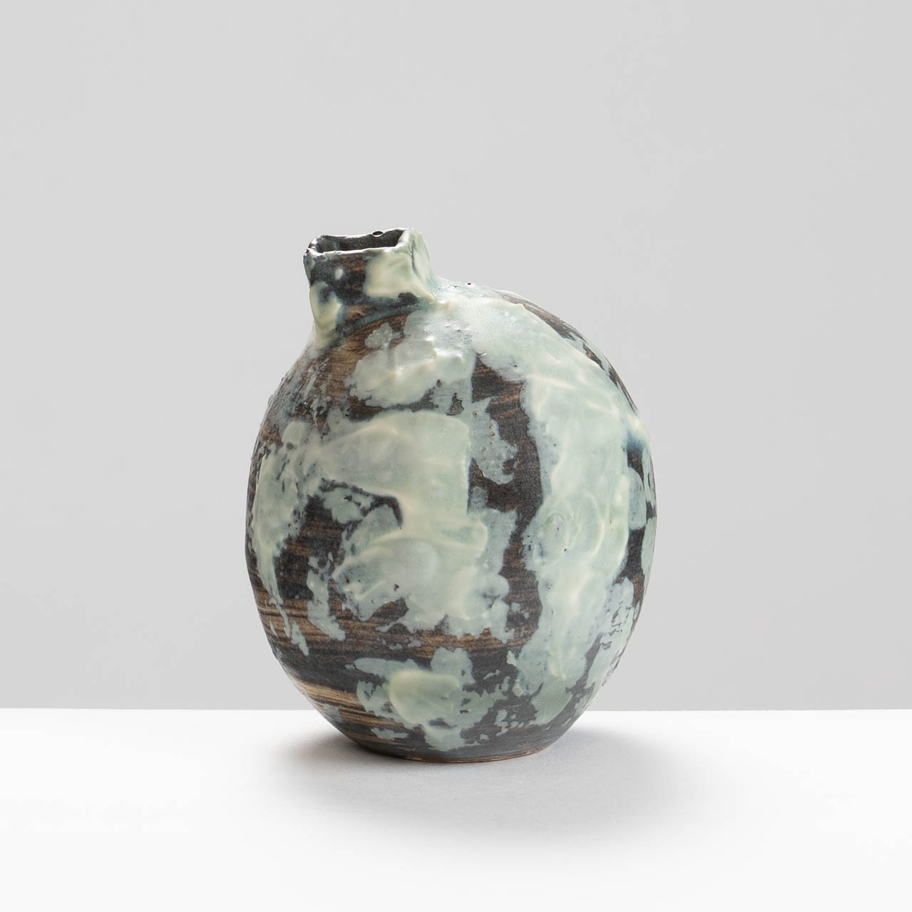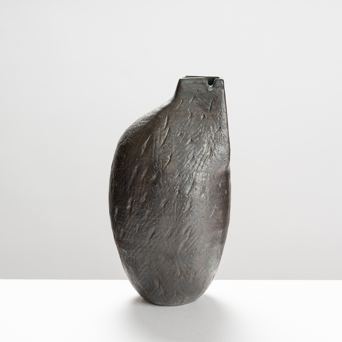 The slow repetitive hand-building techniques she uses to create her pieces offer a considered way to develop the work as each piece calmly grows. Deliberate junctions are made by breaking and re-joining the form where collars or shoulders then evolve. Surface markings are infused into the work during the making, with slips and oxides being applied throughout the drying stage. Built with a white stoneware clay body, the work may be glazed or left bare.